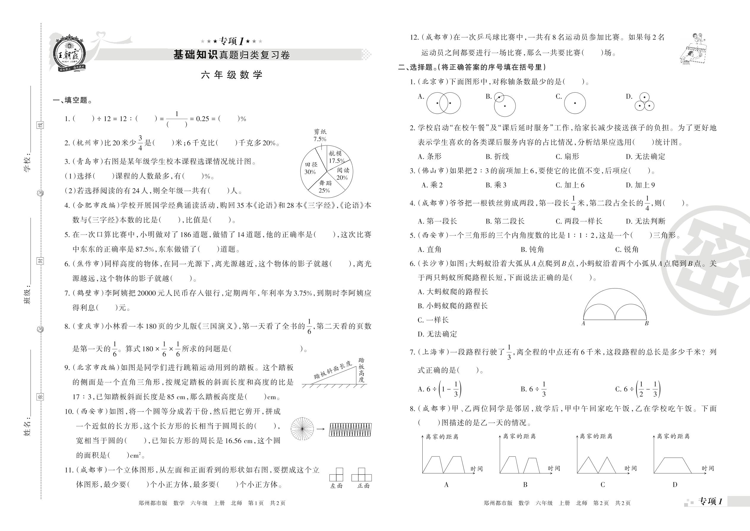 王朝霞期末专项卷——基础知识真题归类复习卷六年级上册数学(北师版)【1】