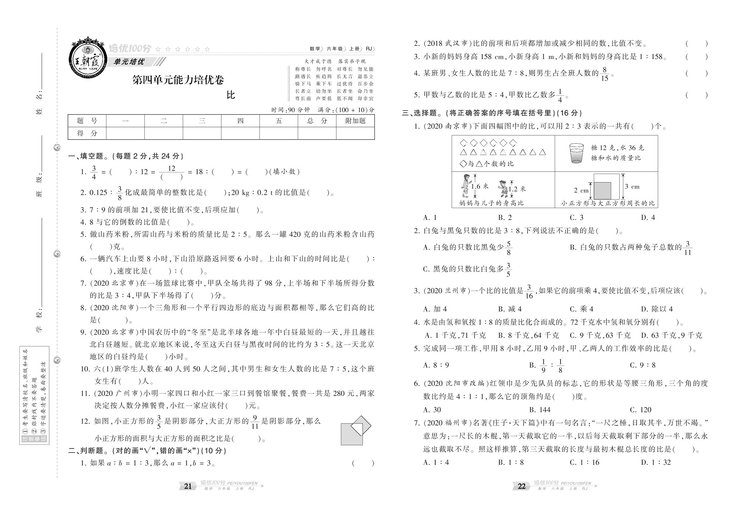 2020上册六年级数学人教版 第四单元 能力培优卷