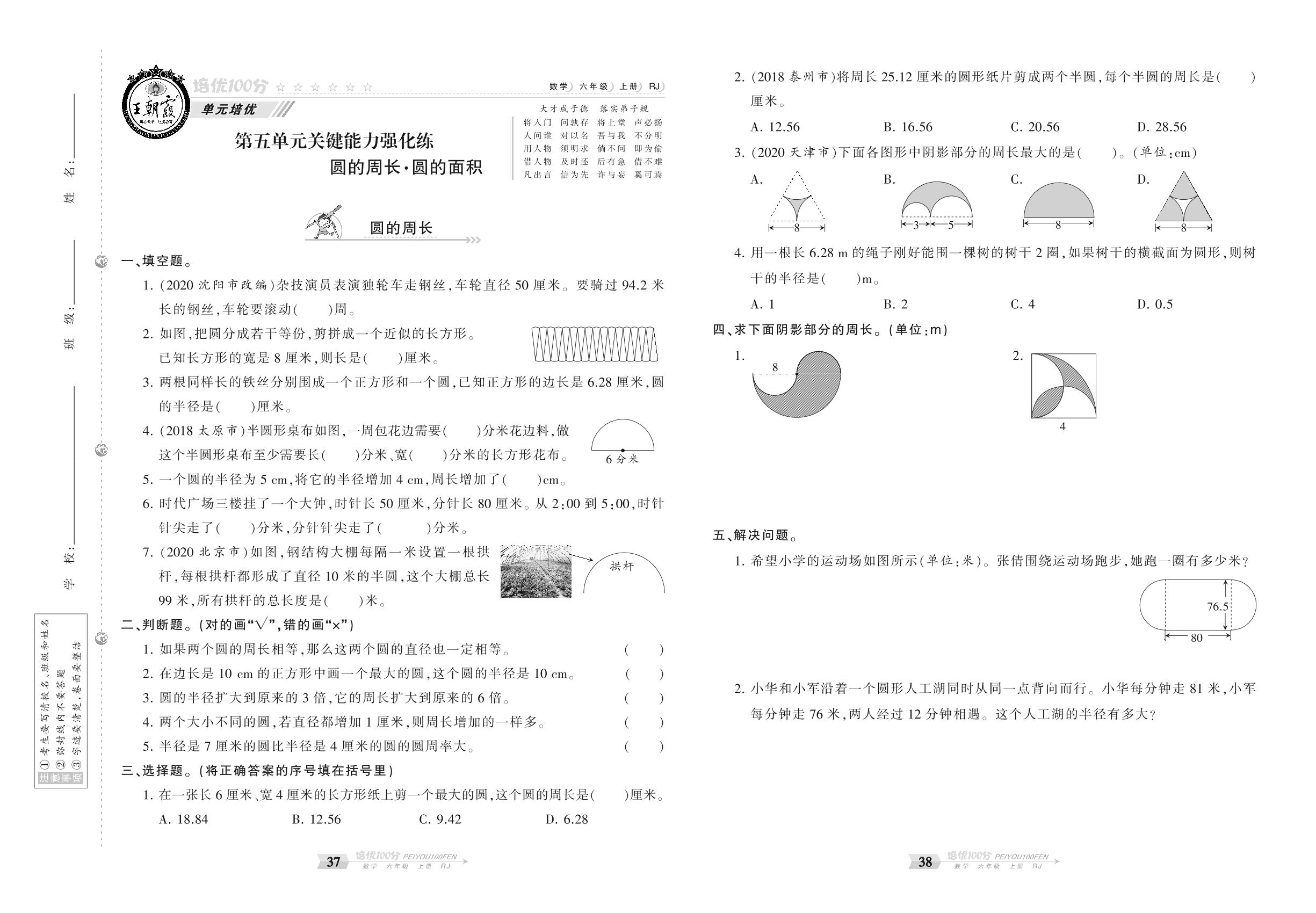 2020上册六年级数学人教版 第五单元 关键能力强化练