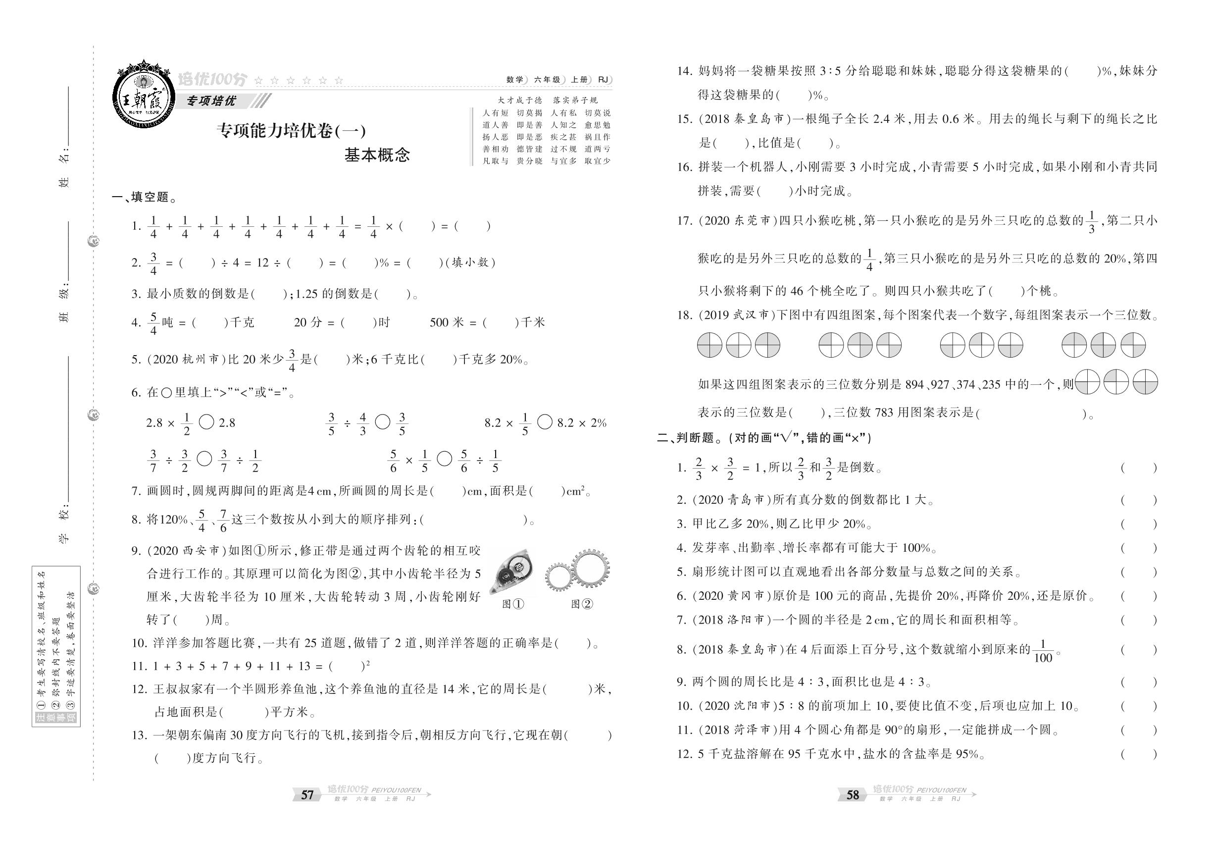 2020上册六年级数学人教版 专项能力培优卷(一) 基本概念