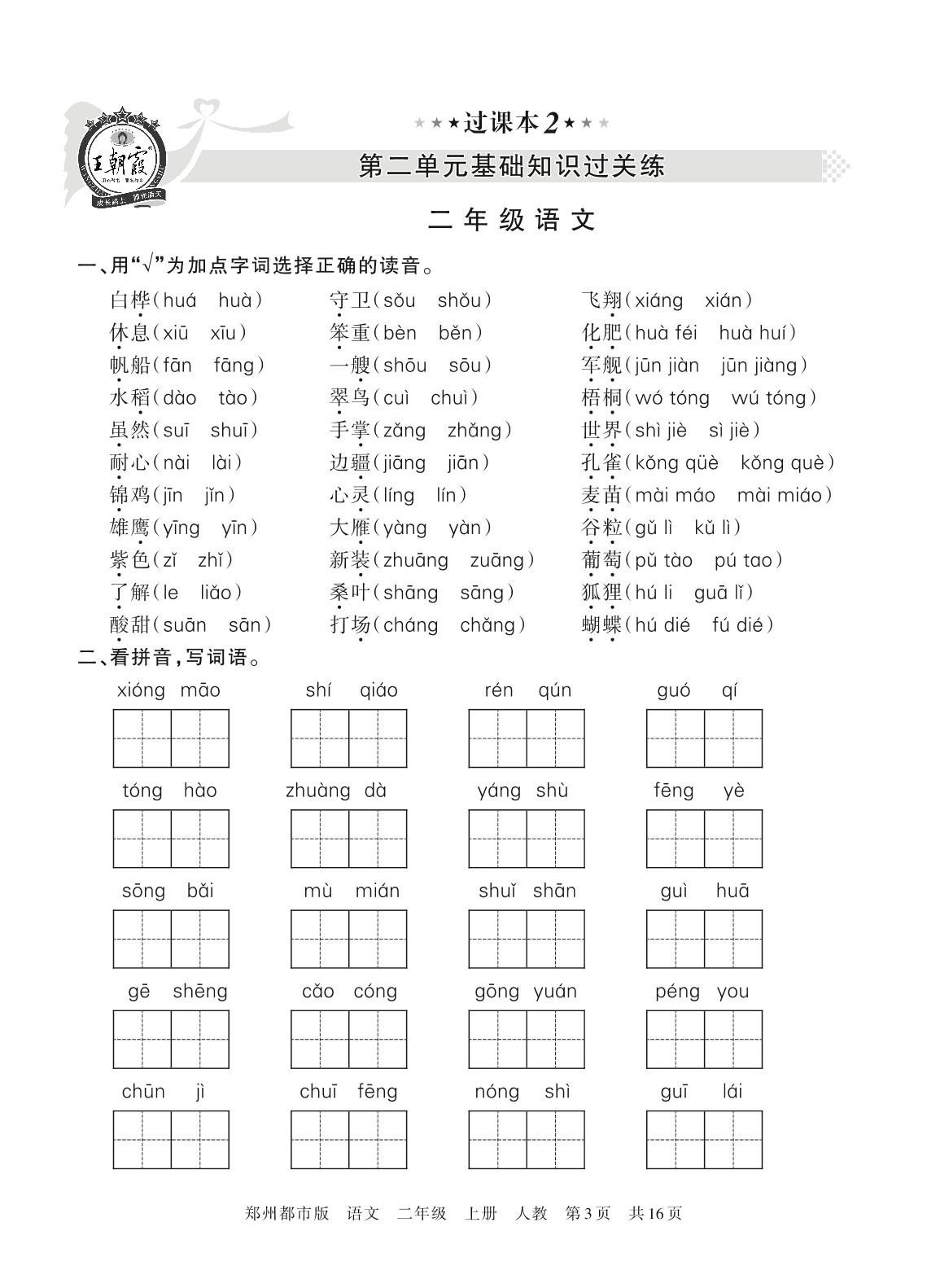 王朝霞期末过课本——第二单元基础知识过关练二年级上册语文(人教版)_R211117155615590【2】