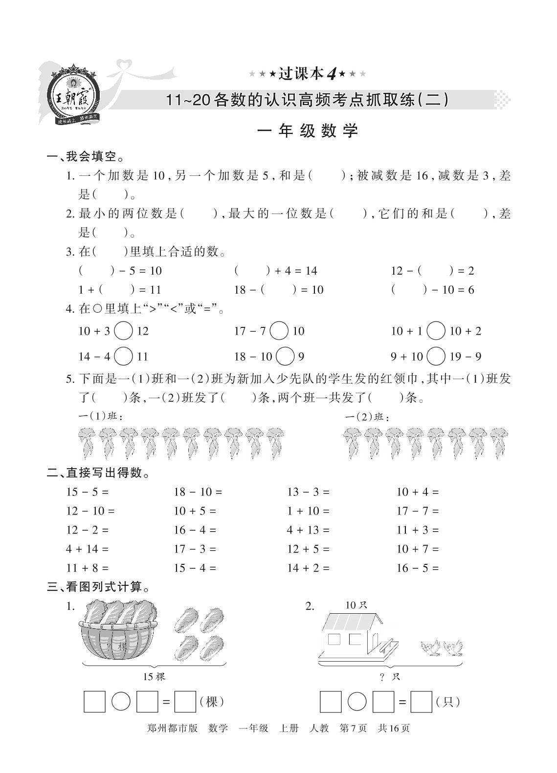 王朝霞期末过课本——11~20各数的认识高频考点抓取练(二)一年级上册数学(人教版)_R211117161420195【4】