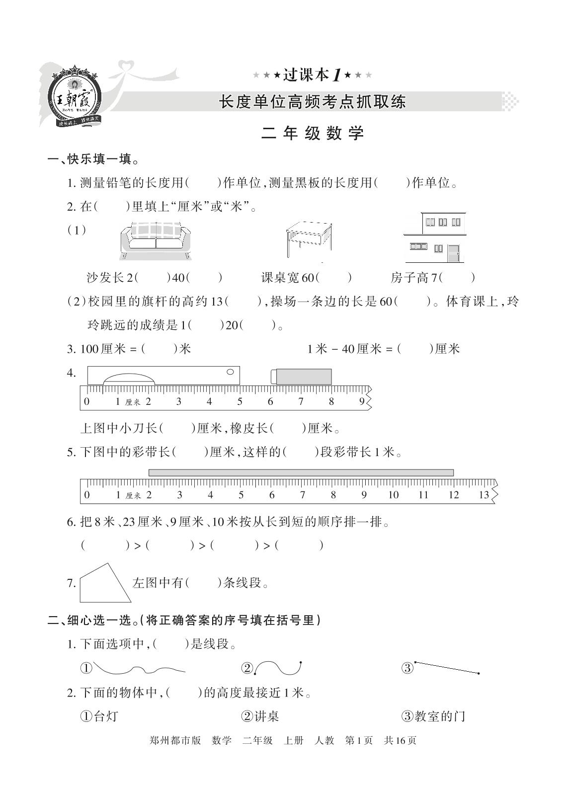 王朝霞期末过课本——长度单位高频考点抓取练二年级上册数学(人教版)_R211117161838282【1】
