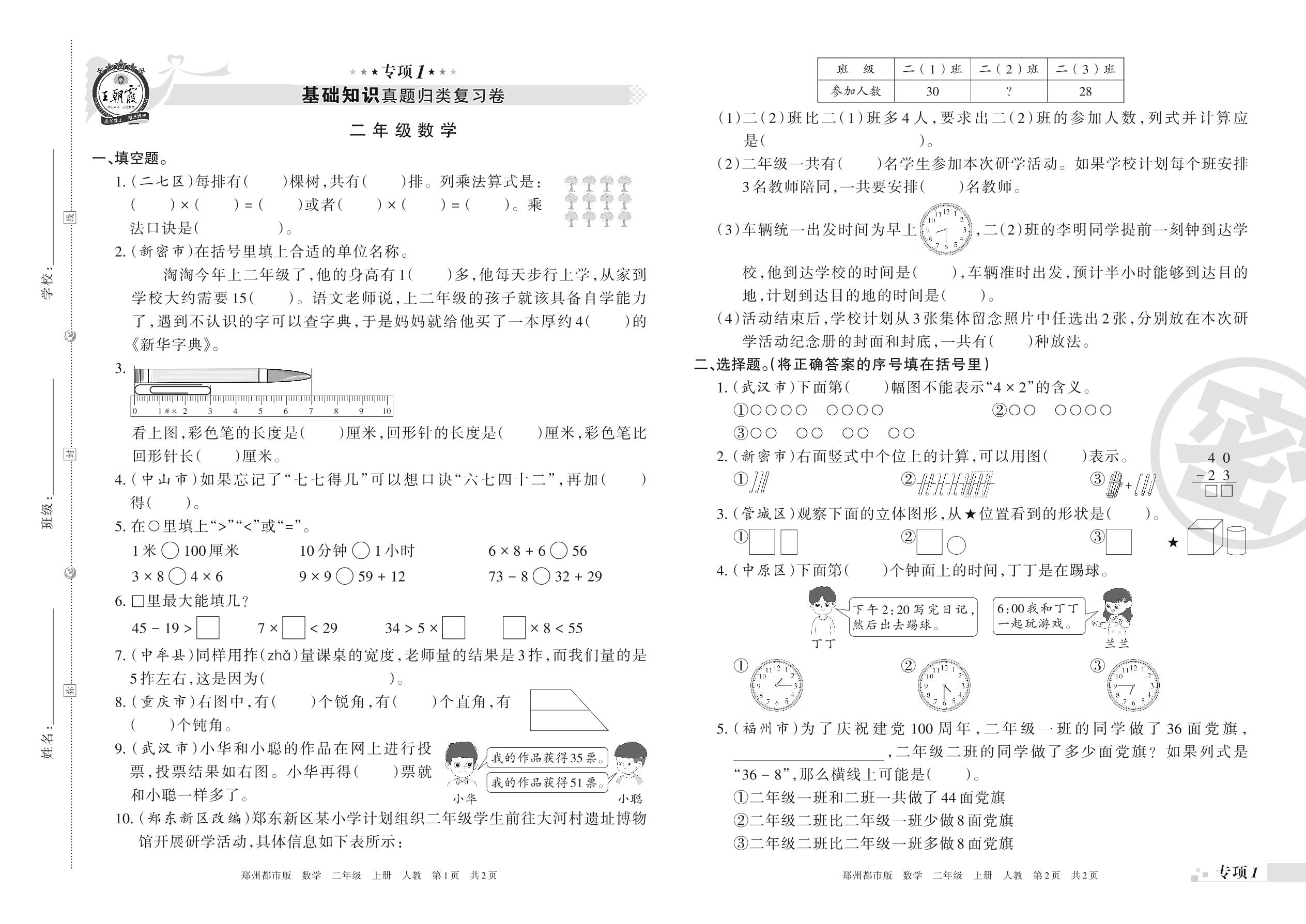 王朝霞期末专项卷——基础知识真题归类复习卷二年级上册数学(人教版)_R211117161838109【1】