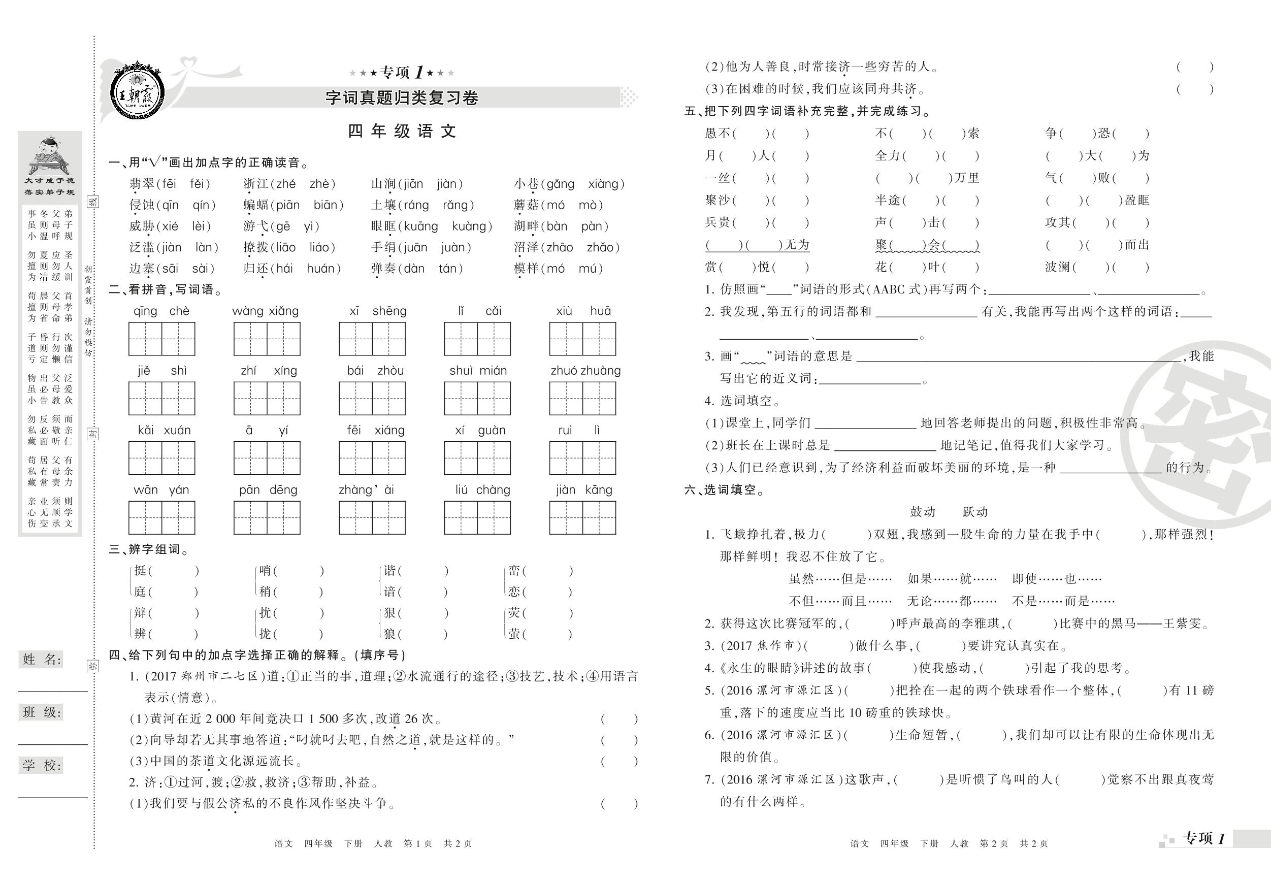 王朝霞期末专项卷——字词、句子真题归类复习四年级下册语文(人教版)_R210801202527【0】