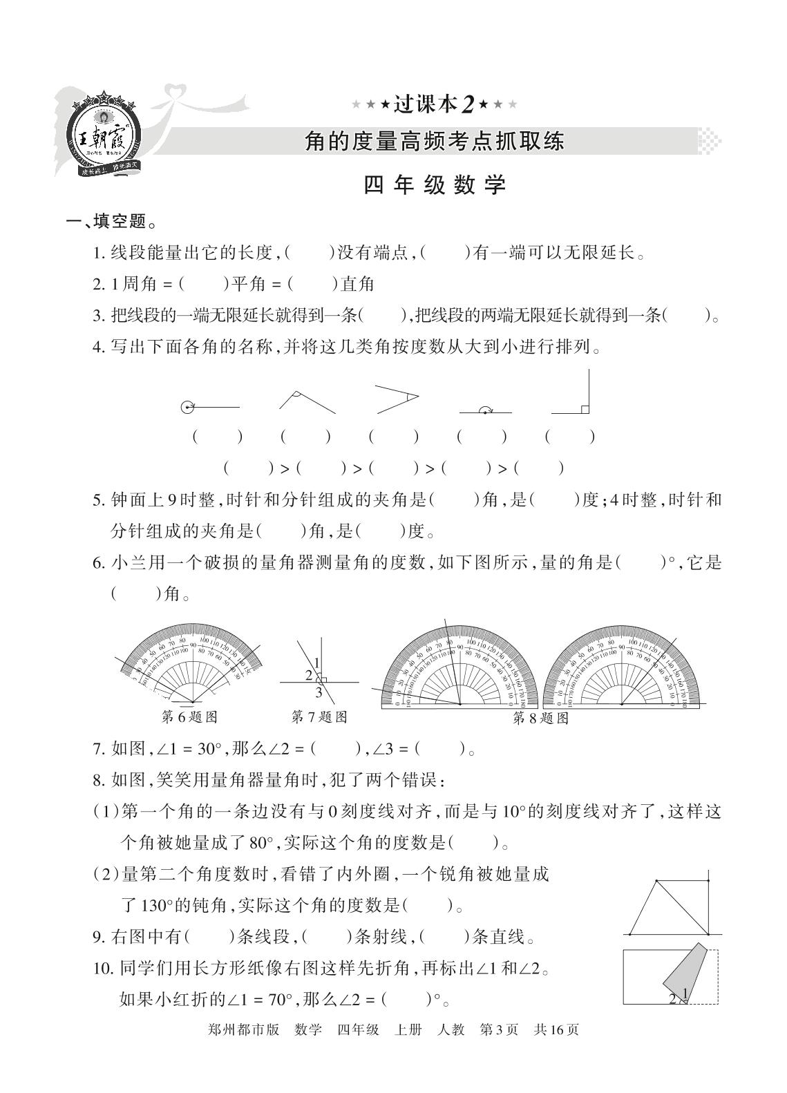 王朝霞期末过课本——角的度量高频考点抓取练四年级上册数学(人教版)_R211117162836519【2】