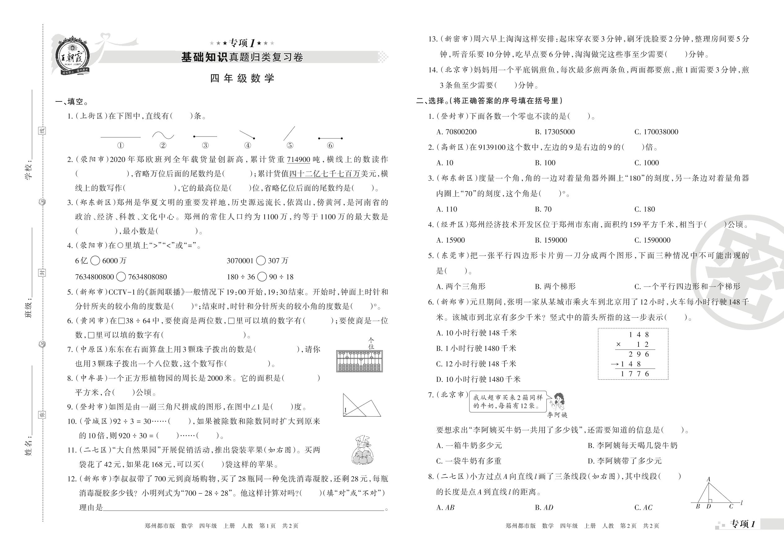王朝霞期末专项卷——基础知识真题归类复习卷四年级上册数学(人教版)_R211117162837277【1】