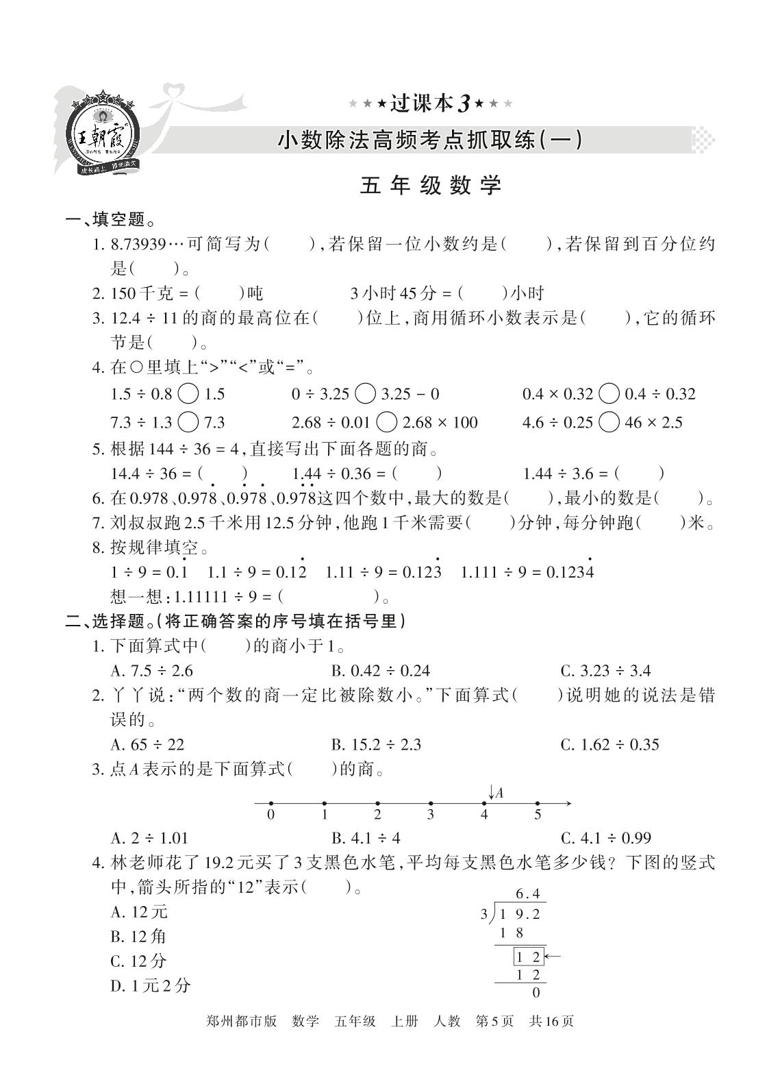 王朝霞期末过课本——小数除法高频考点抓取练(一)五年级上册数学(人教版)_R211117163151610【3】