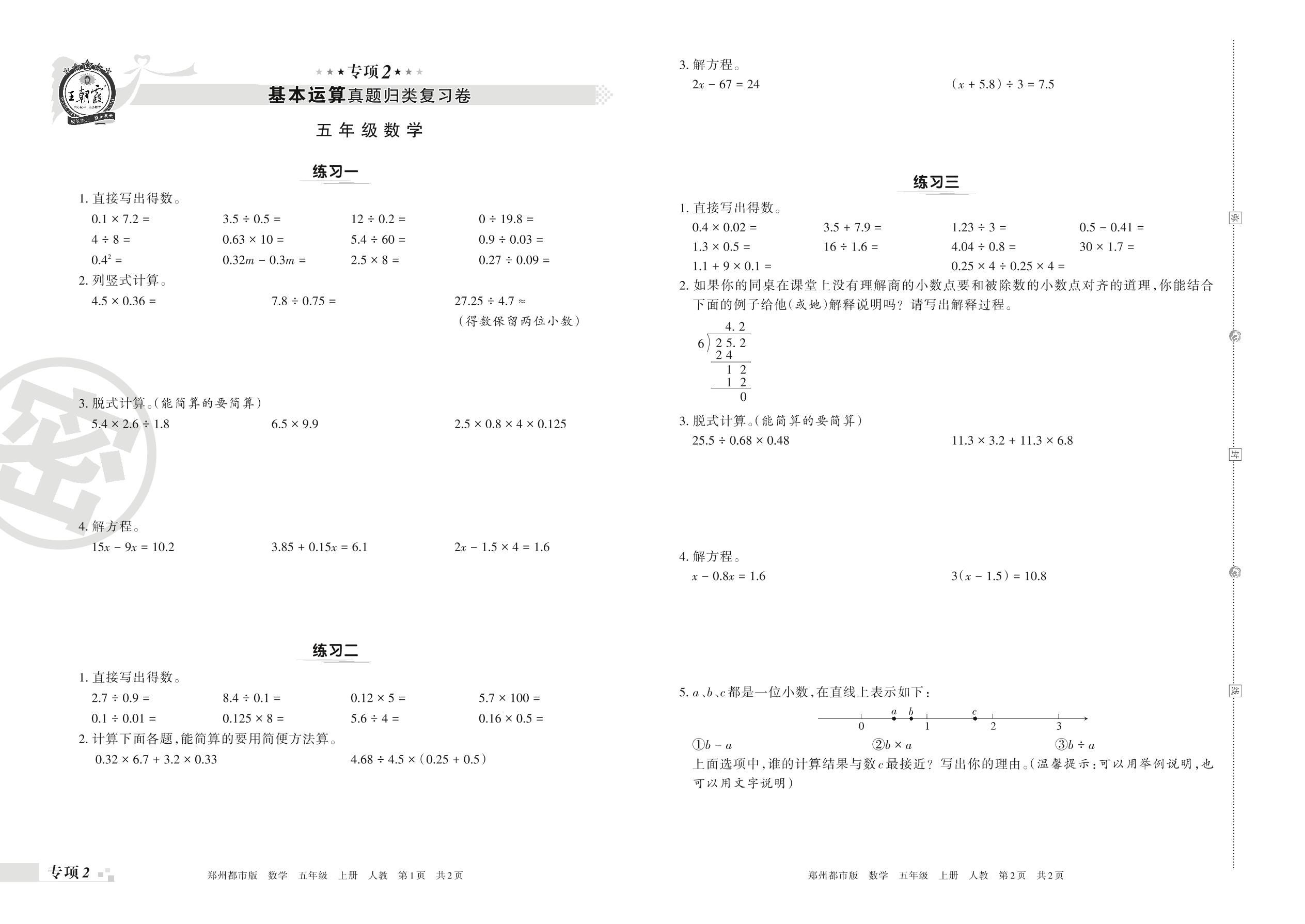 王朝霞期末专项卷——基本运算真题归类复习卷五年级上册数学(人教版)_R211117163151040【2】