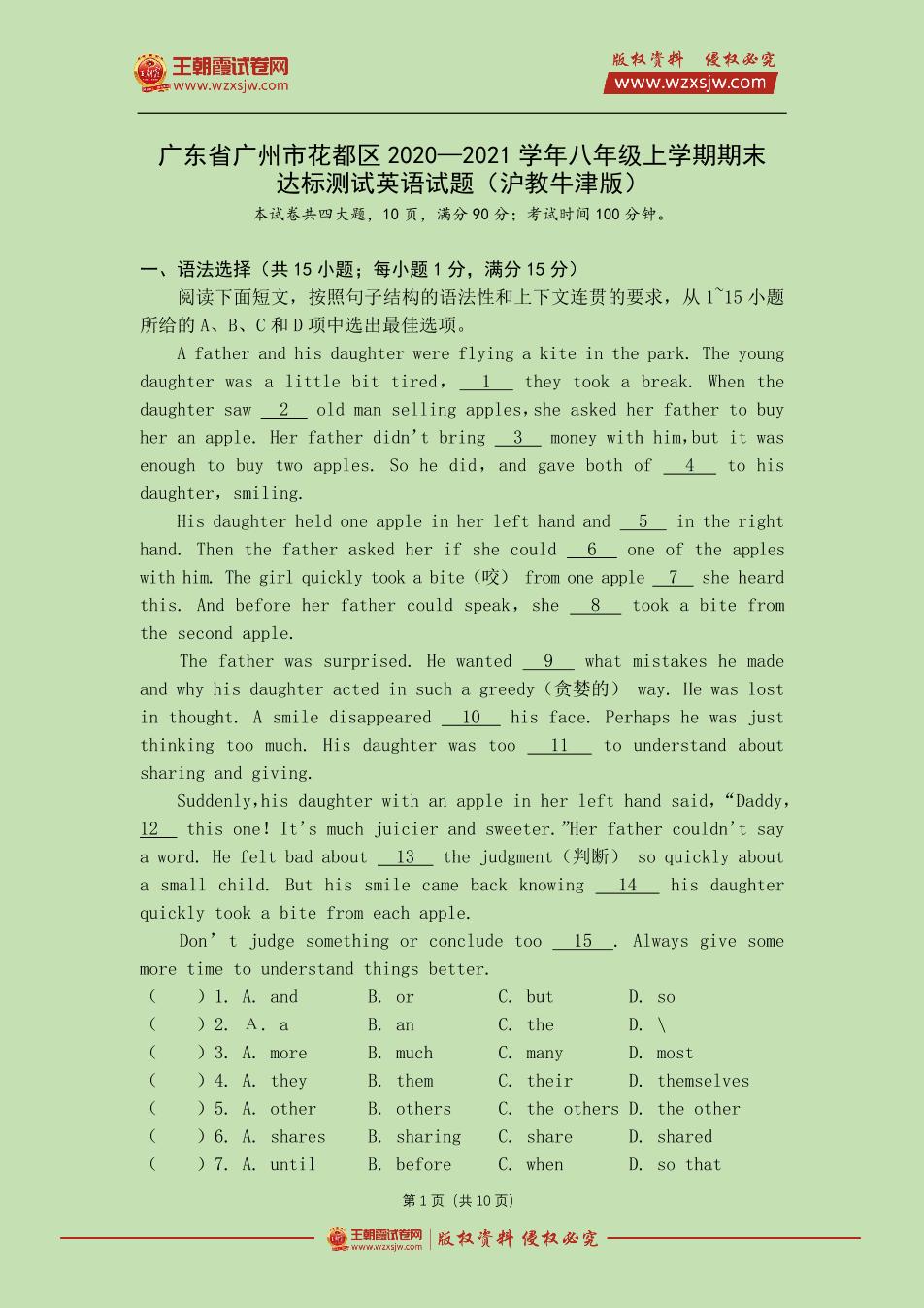广东省广州市花都区2020—2021学年八年级上学期期末达标测试英语试题(沪教牛津版)
