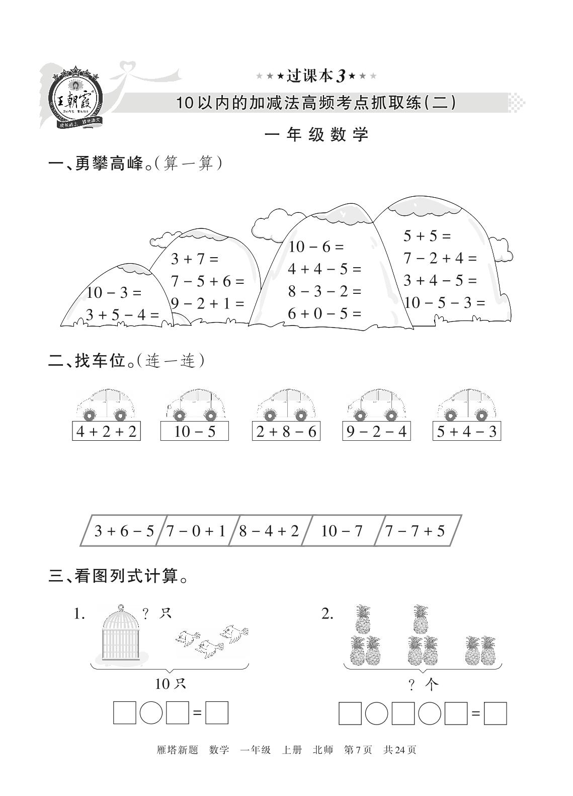 王朝霞期末过课本——10以内的加减法高频考点抓取练(二)一年级上册数学(北师版)【3】