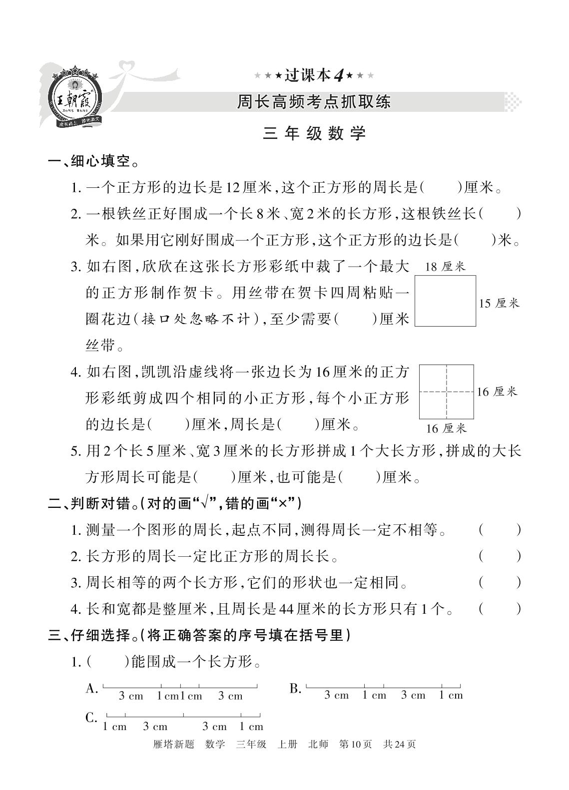 王朝霞期末过课本——周长高频考点抓取练三年级上册数学(北师版)【4】