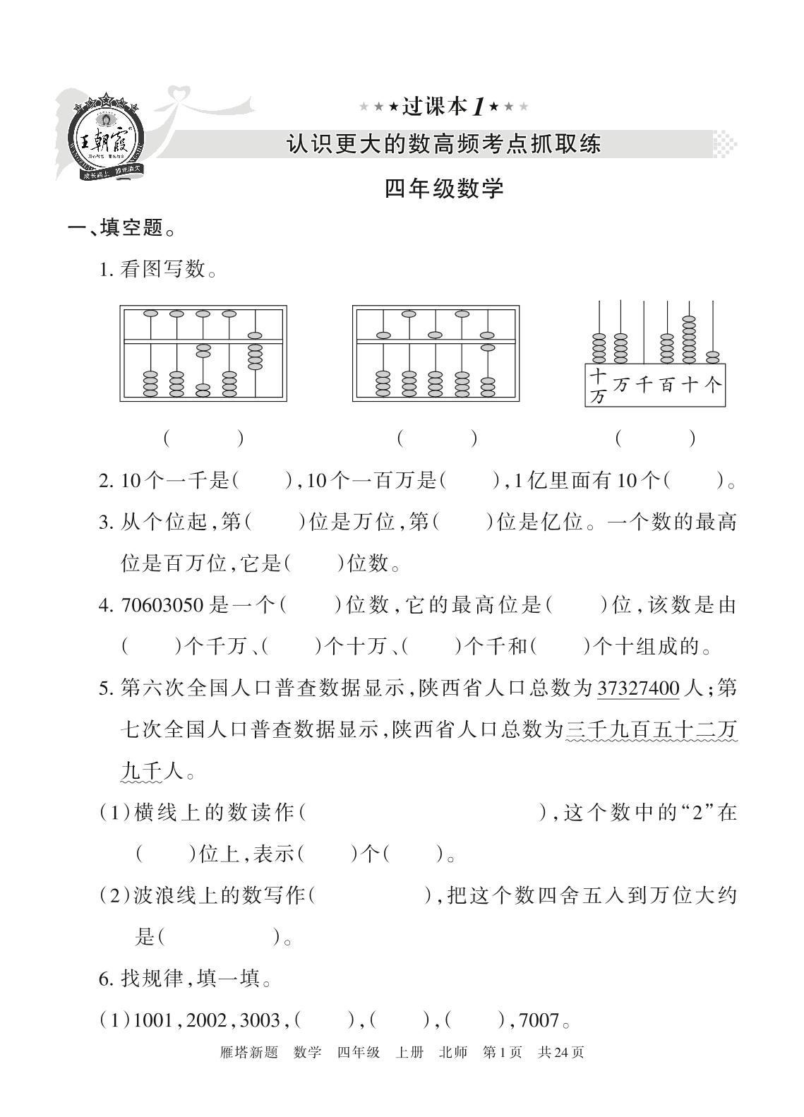 王朝霞期末过课本——认识更大的数高频考点抓取练四年级上册数学(北师版)【1】
