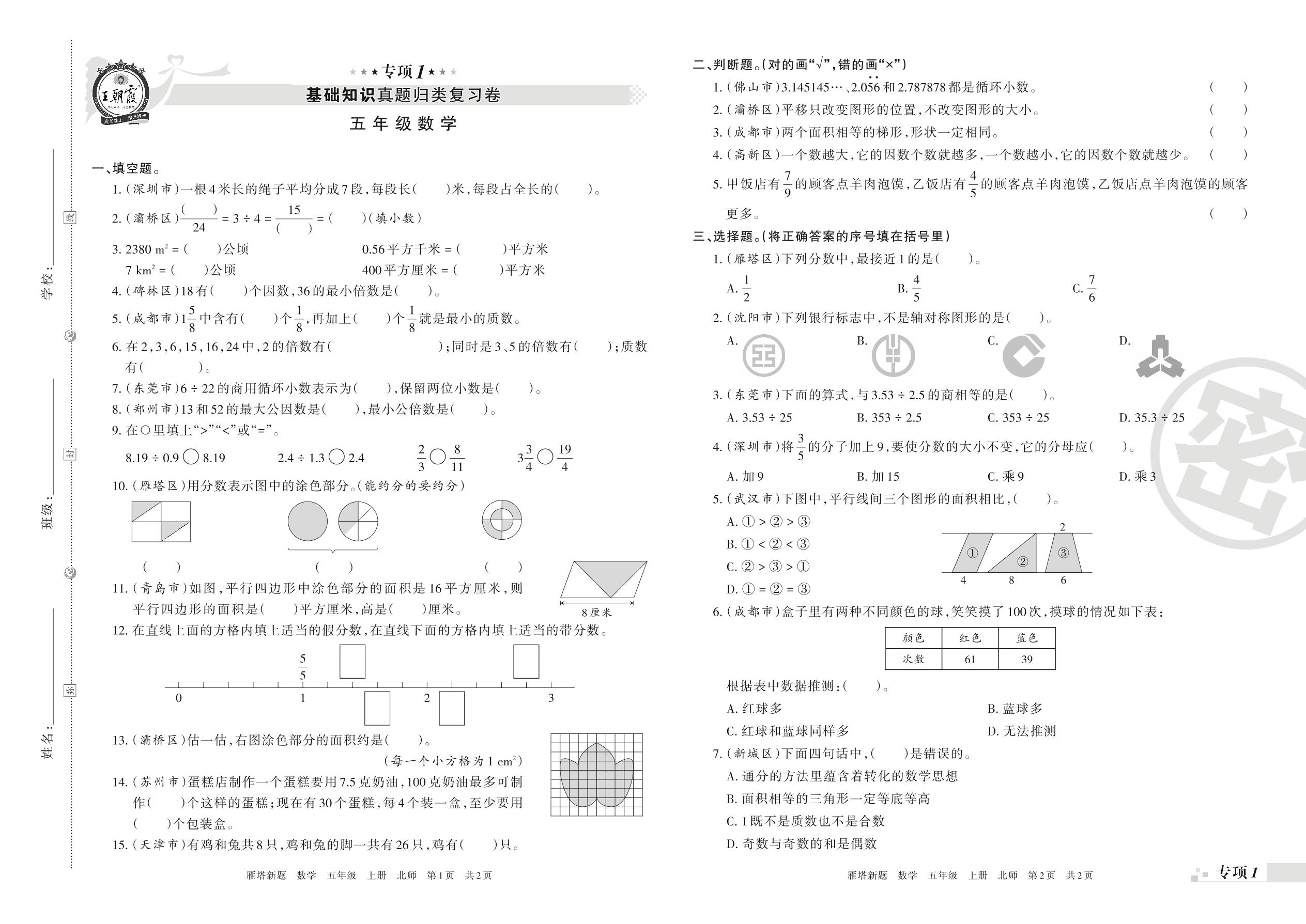 王朝霞期末专项卷——基础知识真题归类复习卷五年级上册数学(北师版)【1】