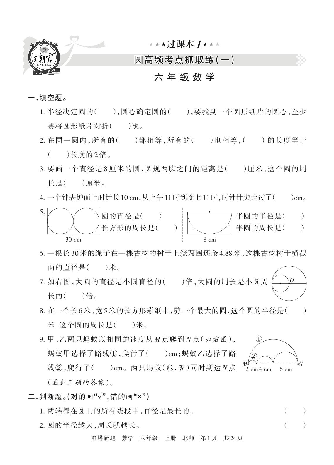 王朝霞期末过课本——圆高频考点抓取练(一)六年级上册数学(北师版)_R211117171704586【1】