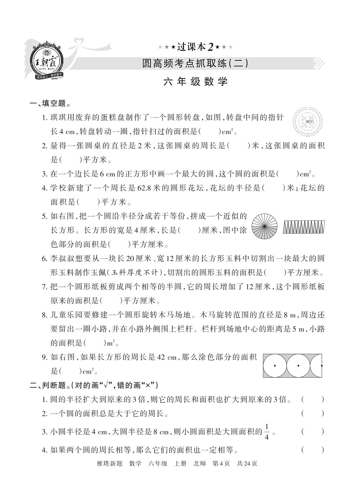王朝霞期末过课本——圆高频考点抓取练(二)六年级上册数学(北师版)_R211117171704142【2】