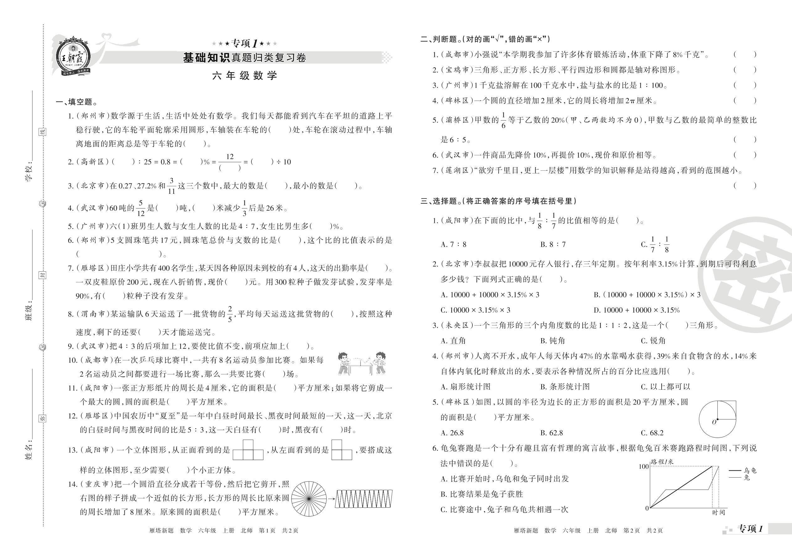王朝霞期末专项卷——基础知识真题归类复习卷六年级上册数学(北师版)_R211117171704244【1】