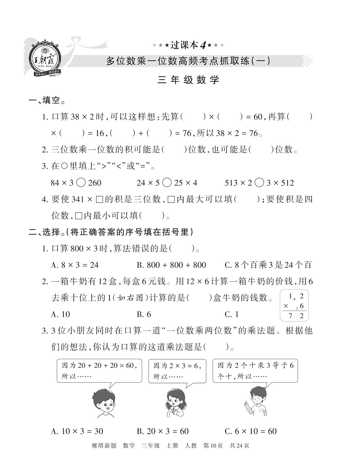 王朝霞期末过课本——多位数乘一位数高频考点抓取练(一)三年级上册数学(人教版)_R211117172501974【4】