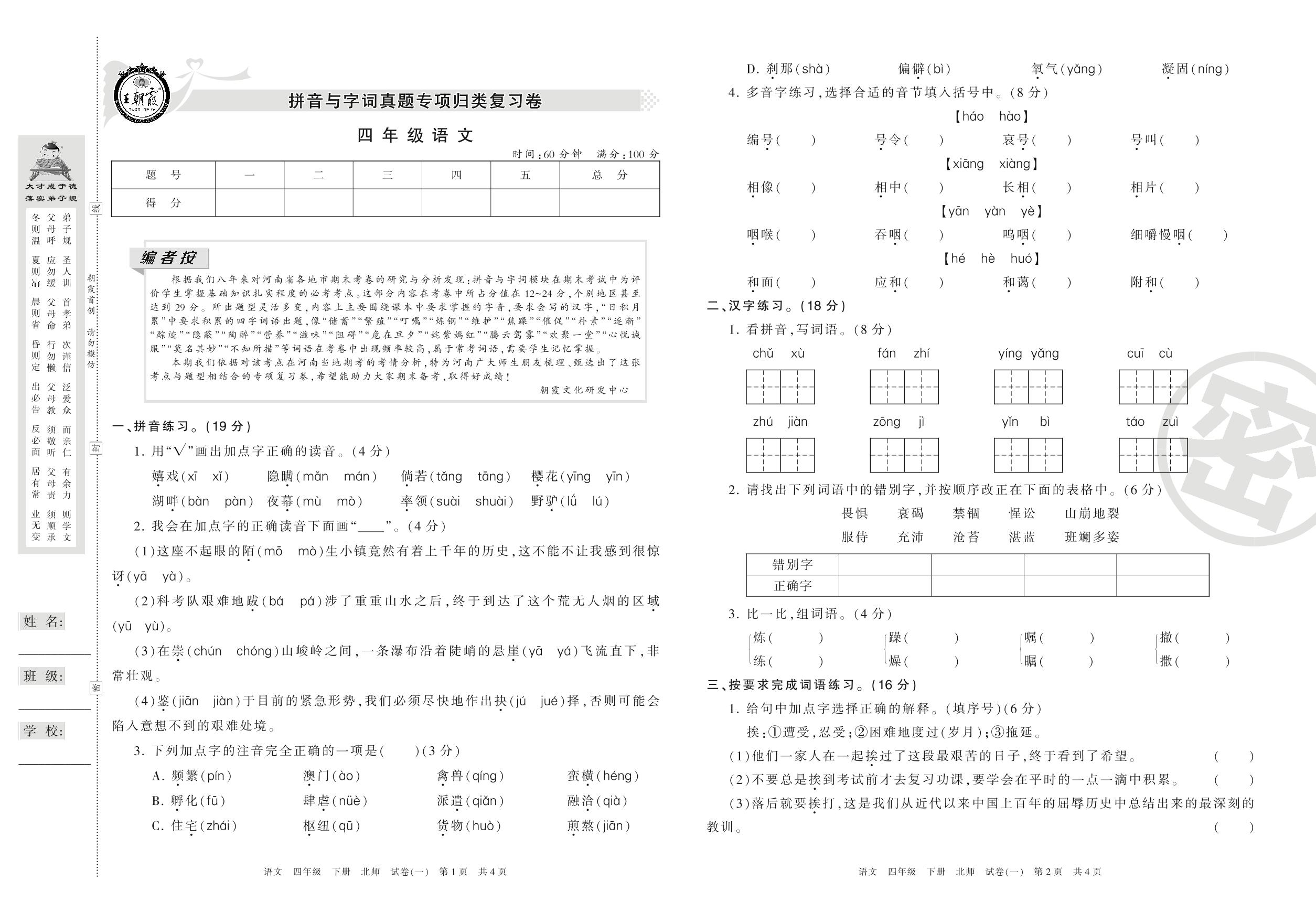 王朝霞期末专项卷四年级下册语文(北师版)_R210801202813【1】