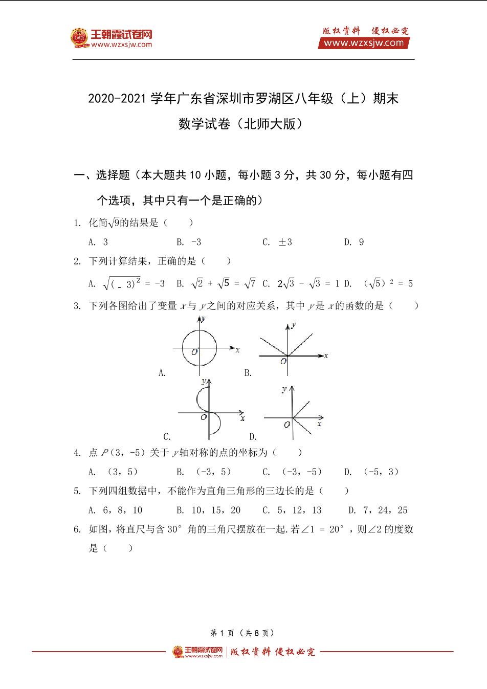 广东省深圳市罗湖区2020-2021学年八年级(上)期末数学试卷(北师大版)