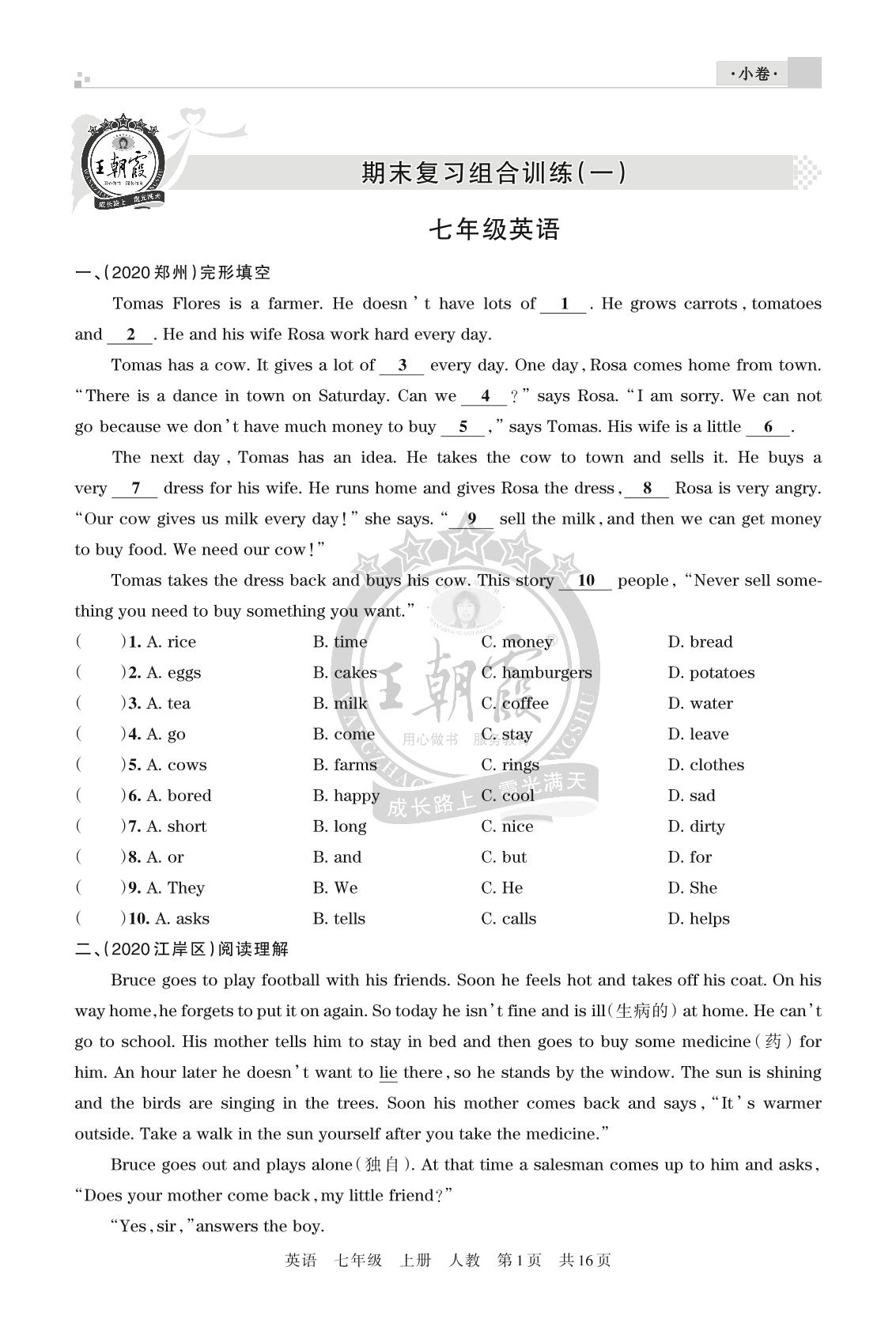 王朝霞期末小卷——期末复习组合训练(一)七年级上册英语(人教版)【1】