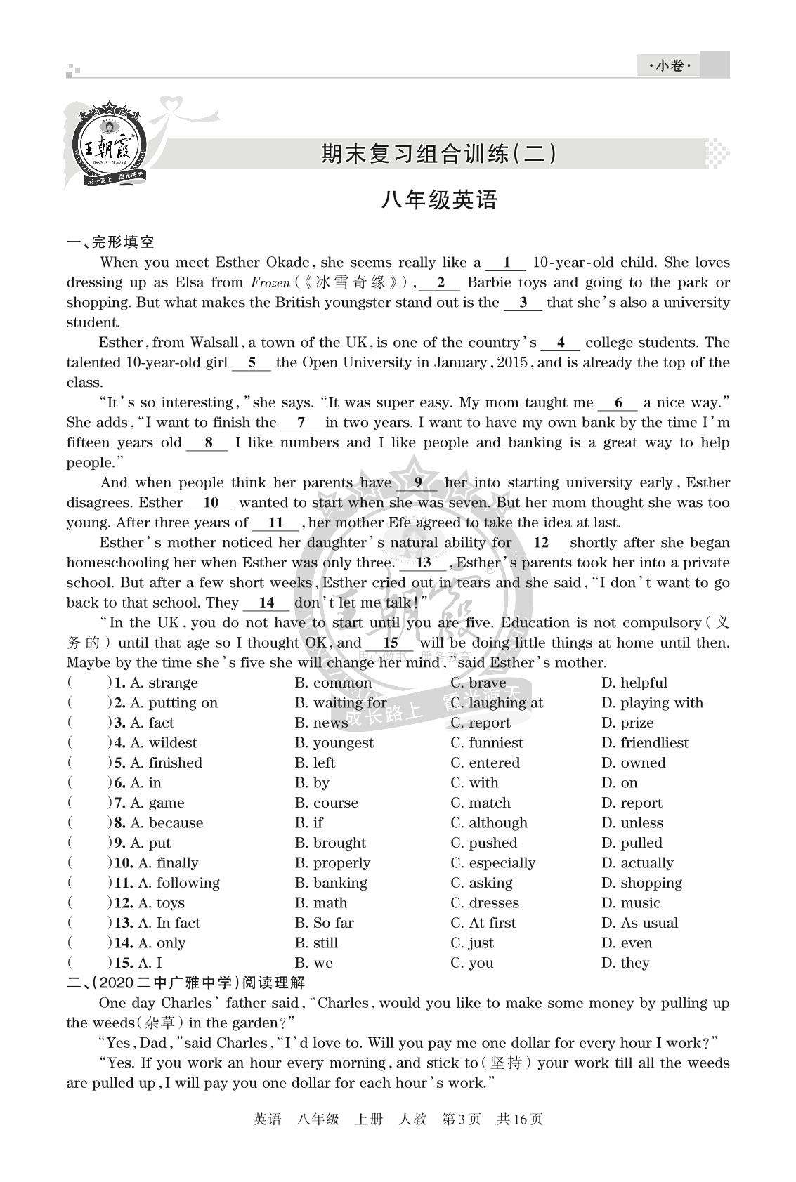 王朝霞期末小卷——期末复习组合训练(二)八年级上册英语(人教版)【2】