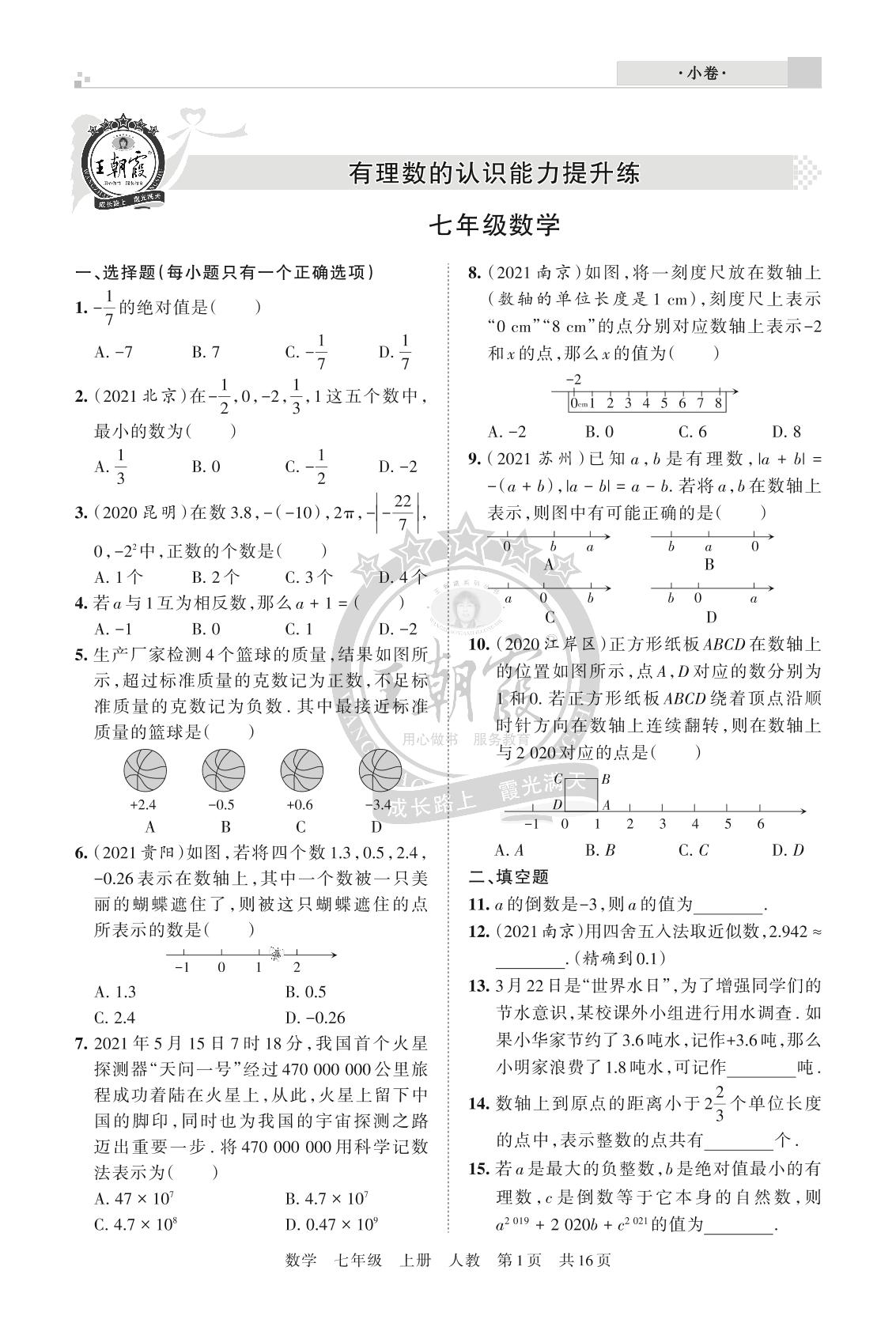 王朝霞期末小卷——有理数的认识能力提升练七年级上册数学(人教版)【1】