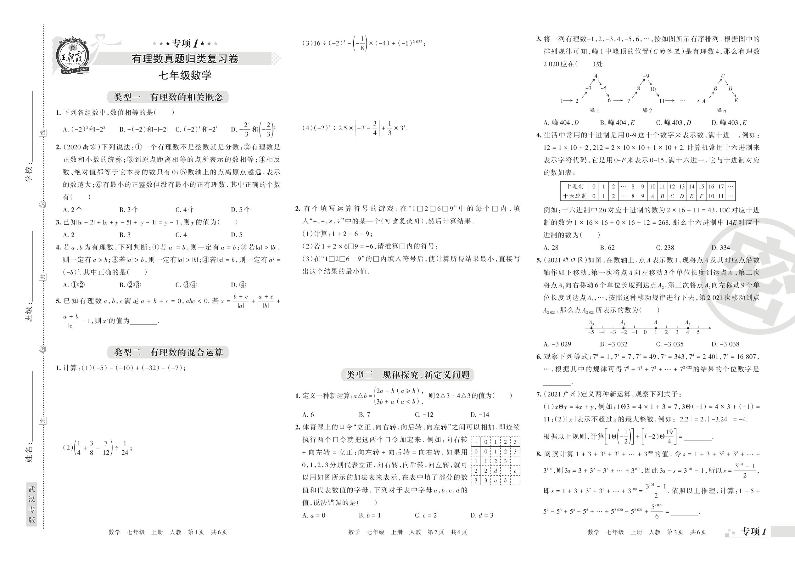 王朝霞期末专项卷——有理数真题归类复习卷七年级上册数学(人教版)【1】