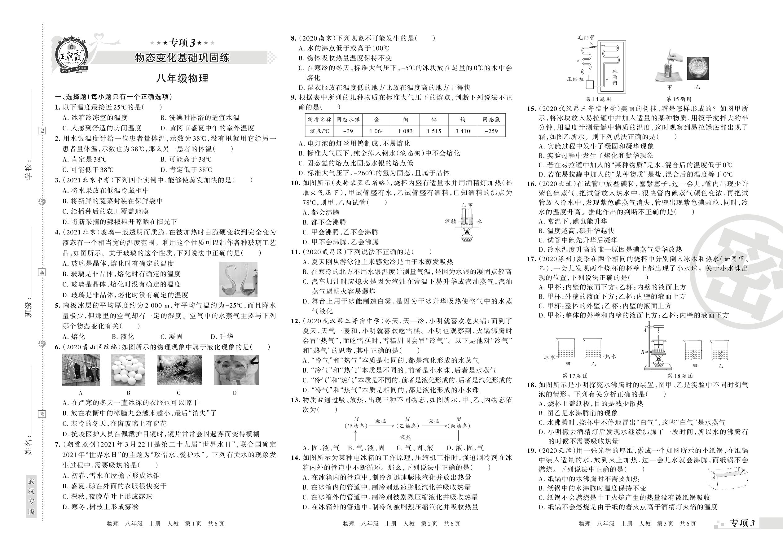 王朝霞期末专项卷——物态变化基础巩固练八年级上册物理(人教版)【3】