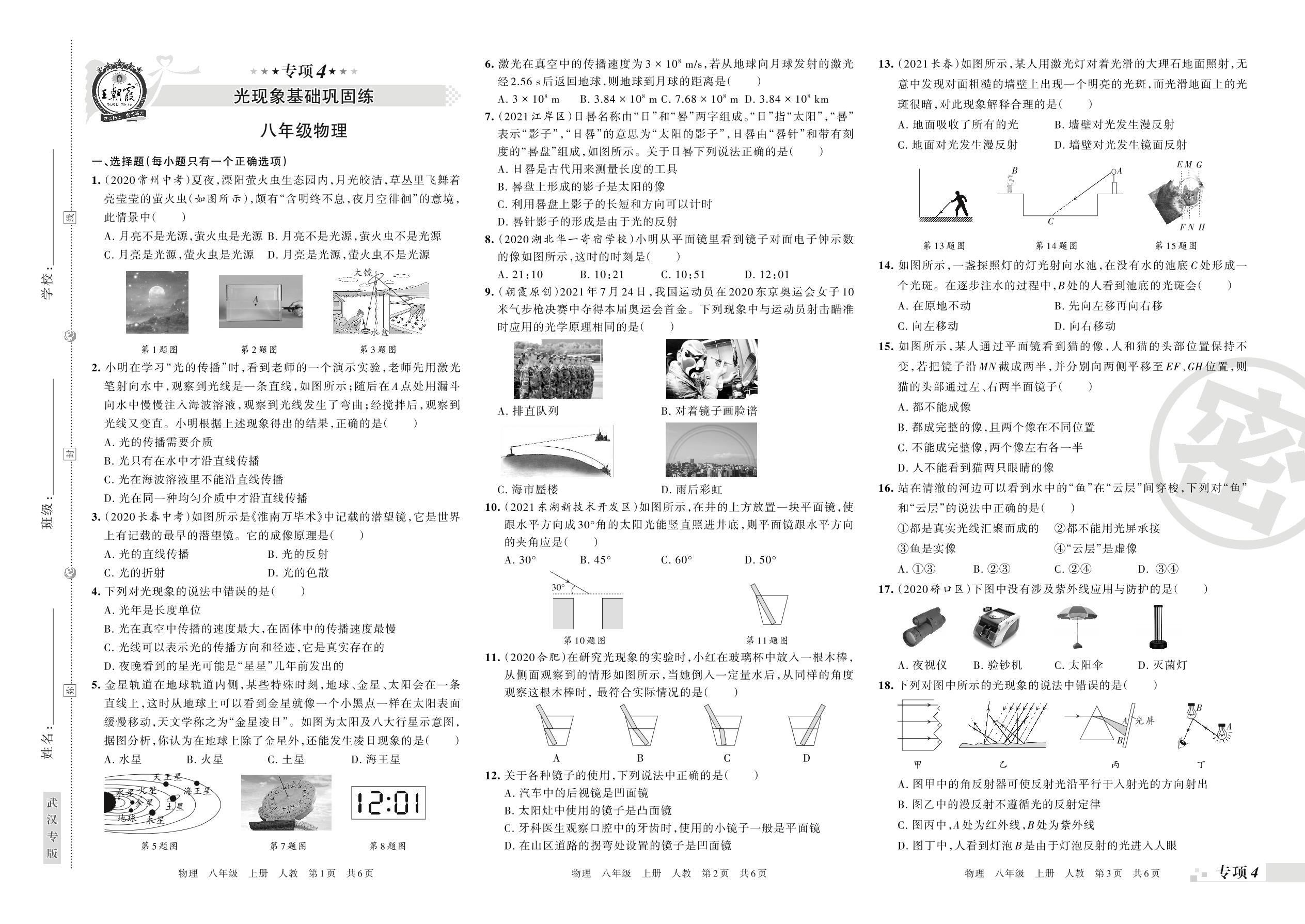 王朝霞期末专项卷——光现象基础巩固练八年级上册物理(人教版)【4】