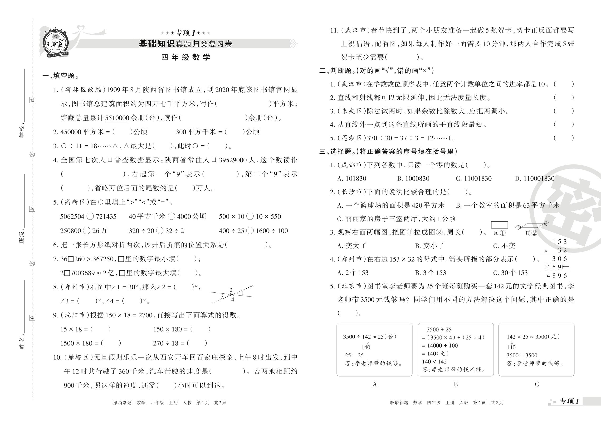 王朝霞期末专项卷——基础知识真题归类复习卷四年级上册数学(人教版)_R211119101032116【1】