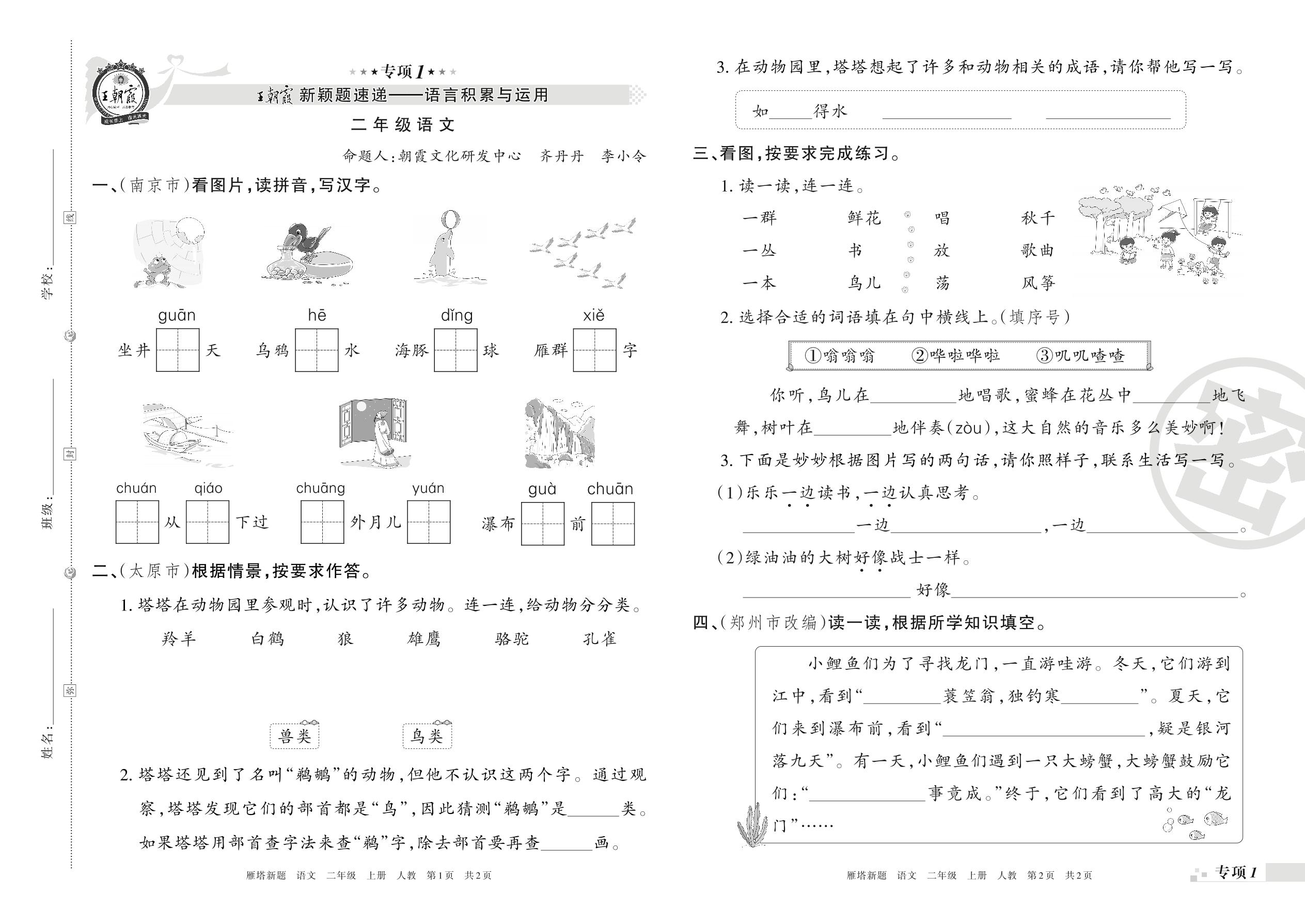 王朝霞期末专项卷——新颖题速递:语言积累与运用二年级上册语文(人教版)_R211119102911412【1】