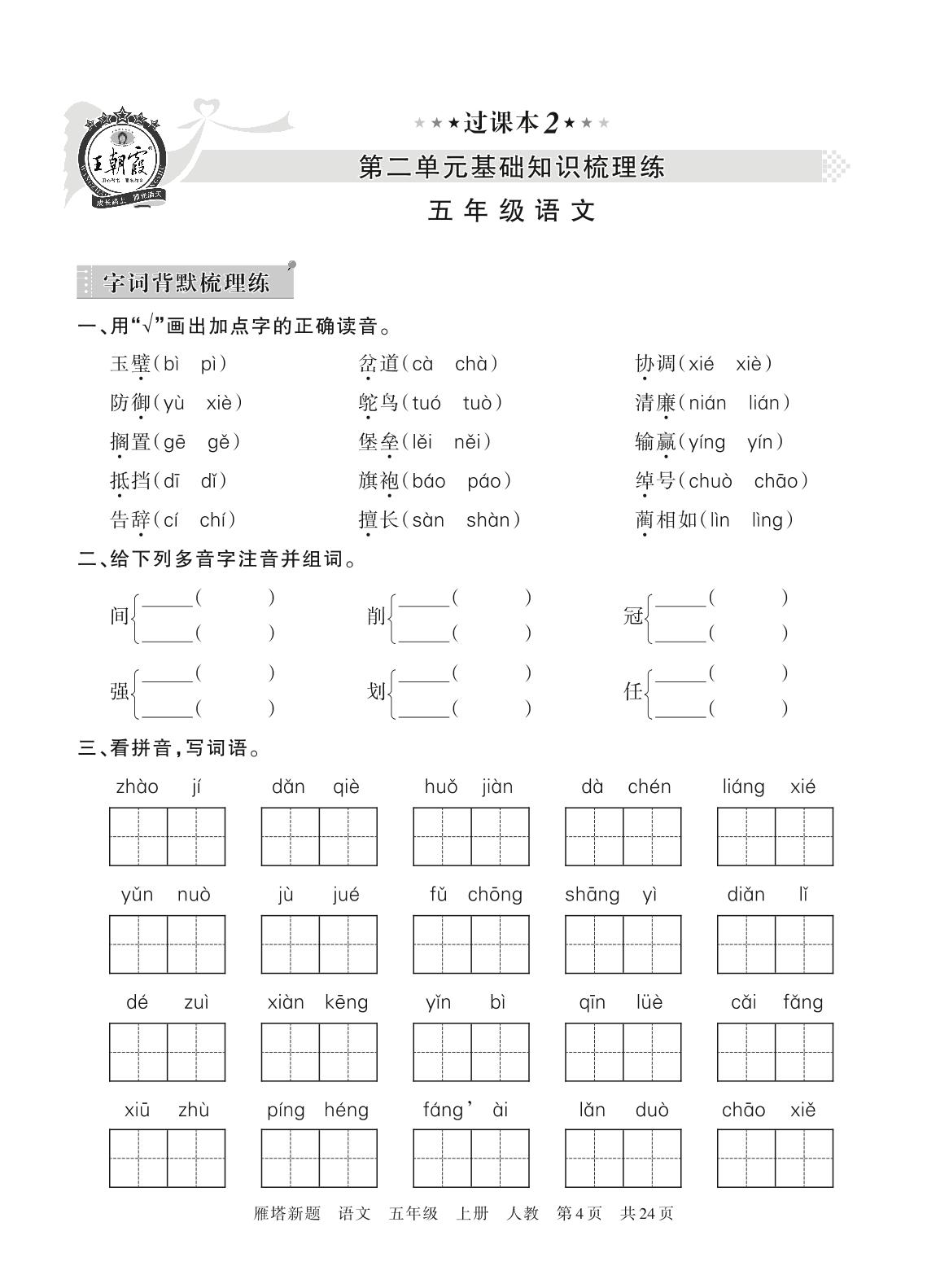 王朝霞期末过课本——第二单元基础知识梳理练五年级上册语文(人教版)【2】