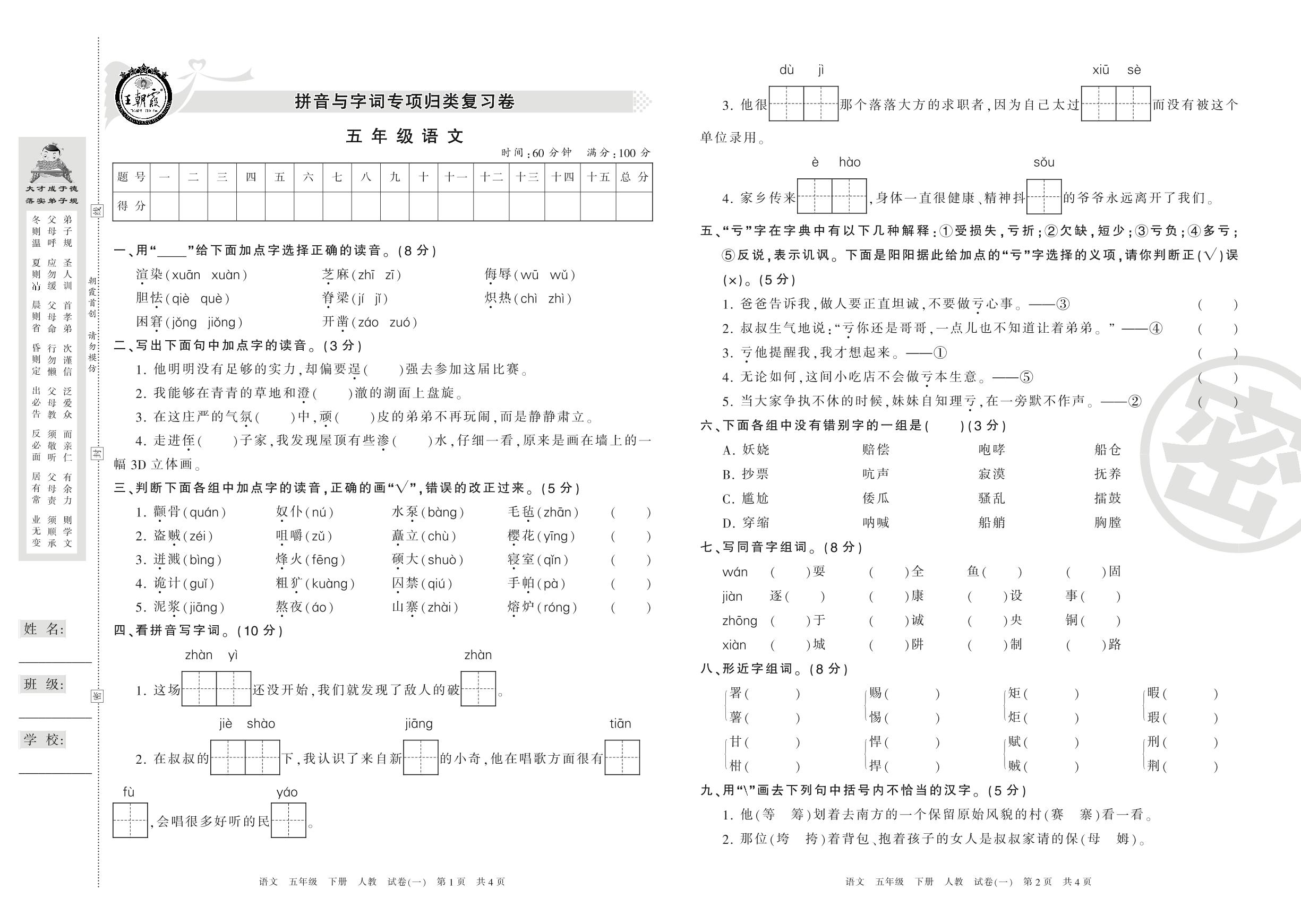 五年级语文人教版下册专项卷