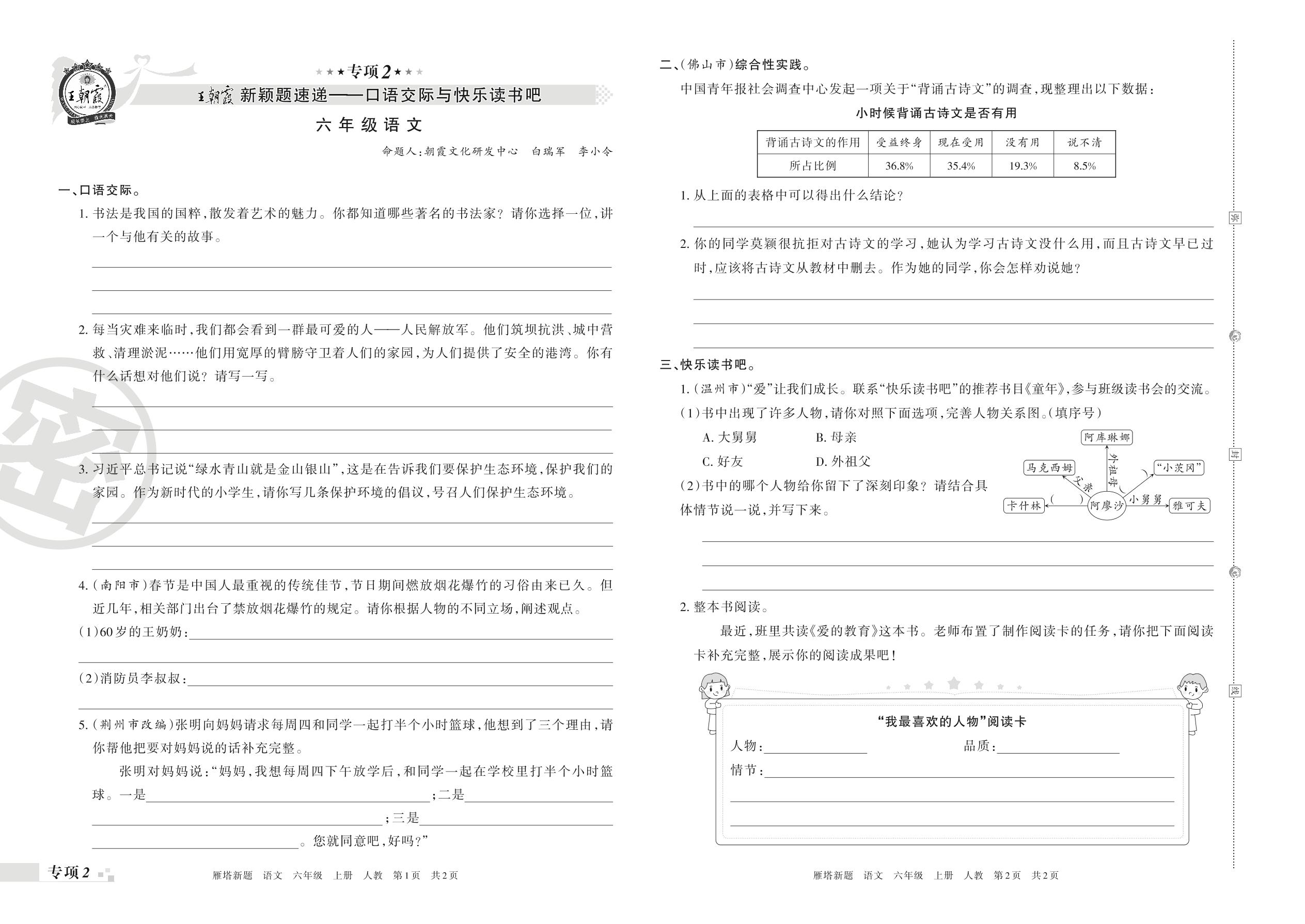 王朝霞期末专项卷——新颖题速递:口语交际与快乐读书吧六年级上册语文(人教版)_R211119104805937【2】