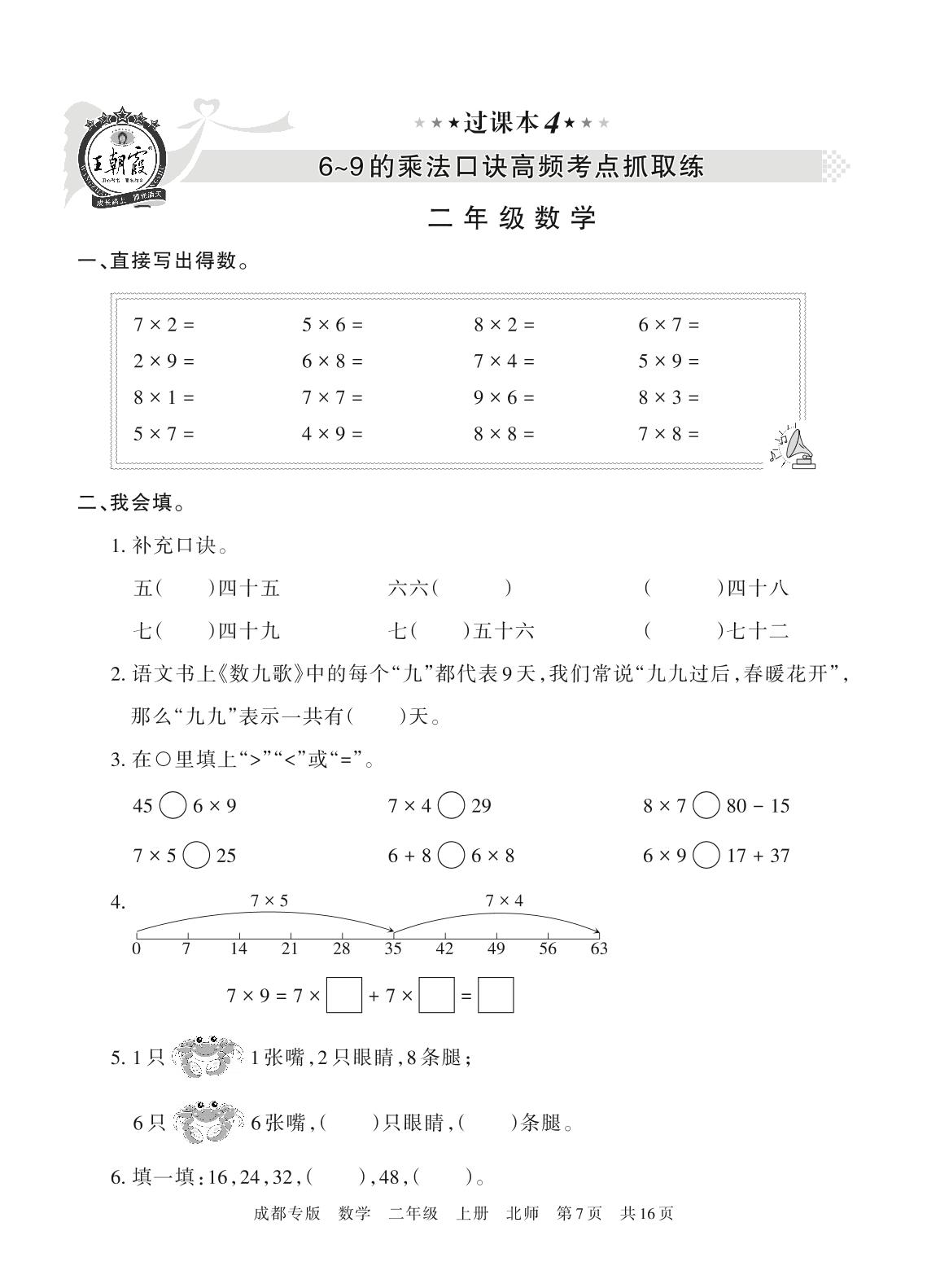 王朝霞期末过课本——6~9的乘法口诀高频考点抓取练二年级上册数学(北师版)_R211119111933365【4】
