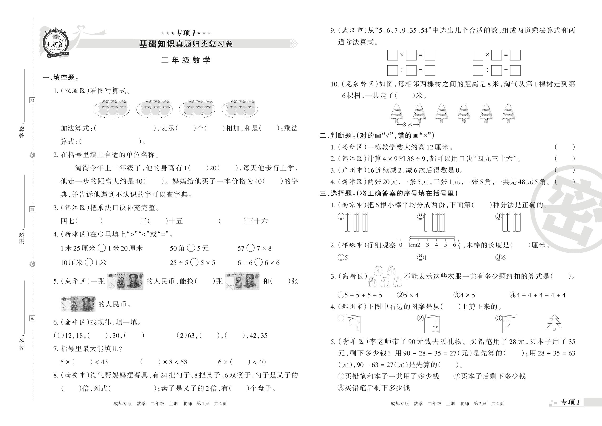 王朝霞期末专项卷——基础知识真题归类复习卷二年级上册数学(北师版)_R211119111933091【1】