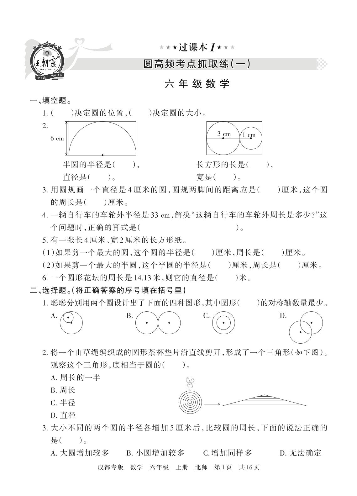 王朝霞期末过课本——圆高频考点抓取练(一)六年级上册数学(北师版)_R211119112504002【1】