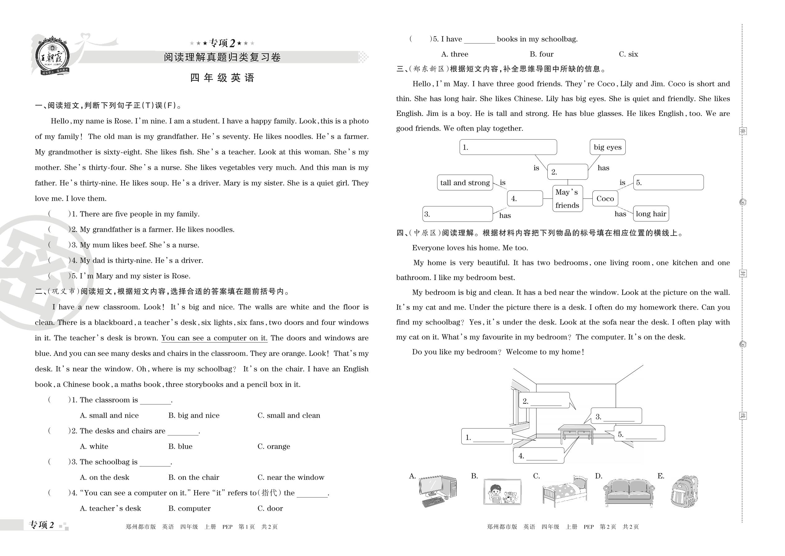 王朝霞期末专项卷——阅读理解真题归类复习卷四年级上册英语(人教PEP版)【2】