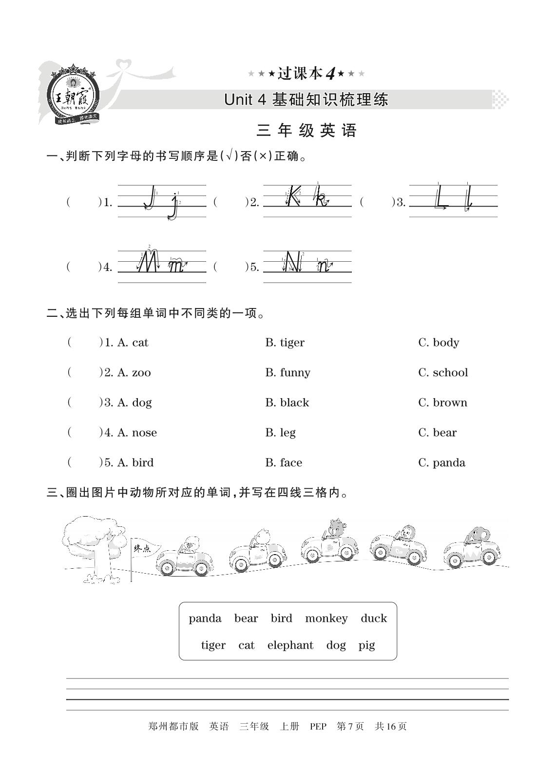 王朝霞期末过课本——Unit 4基础知识梳理练三年级上册英语(人教PEP版)_R211120115535254【4】