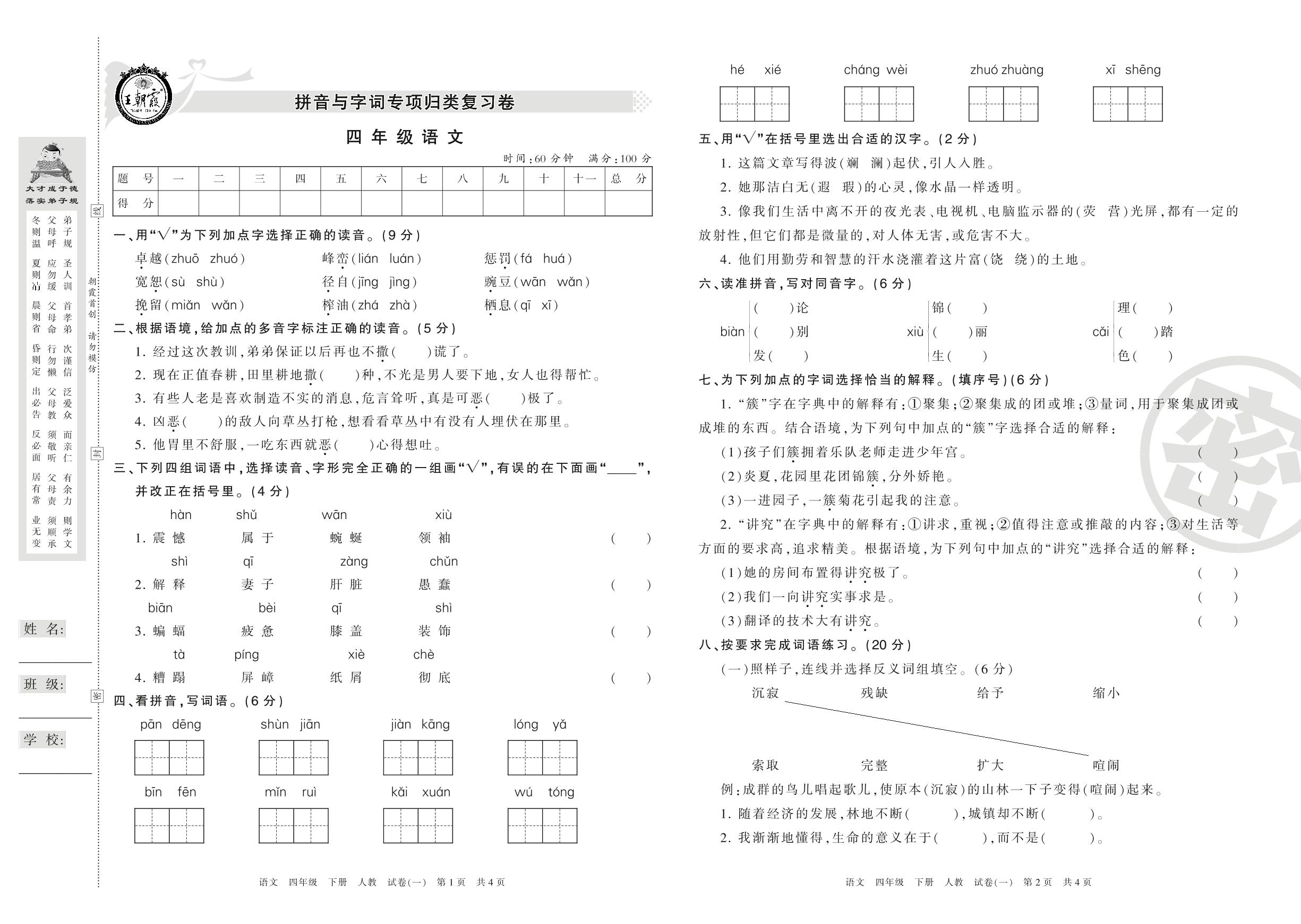王朝霞期末专项卷四年级下册语文(人教版)_R210801203150【1】