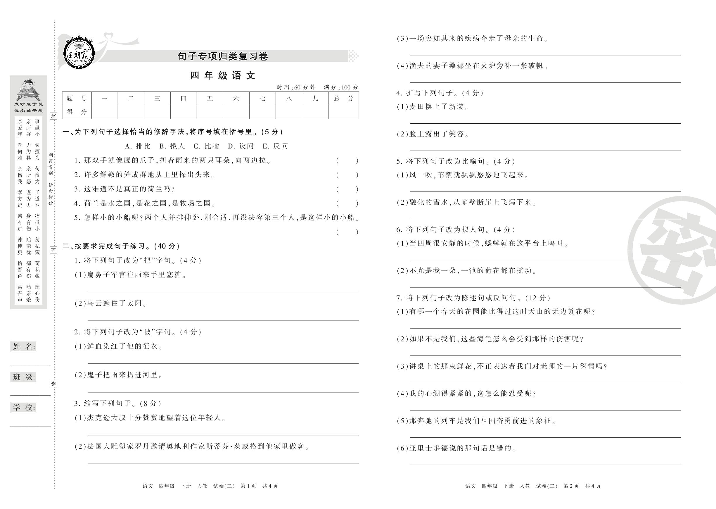 王朝霞期末专项卷四年级下册语文(人教版)_R210801203155【2】