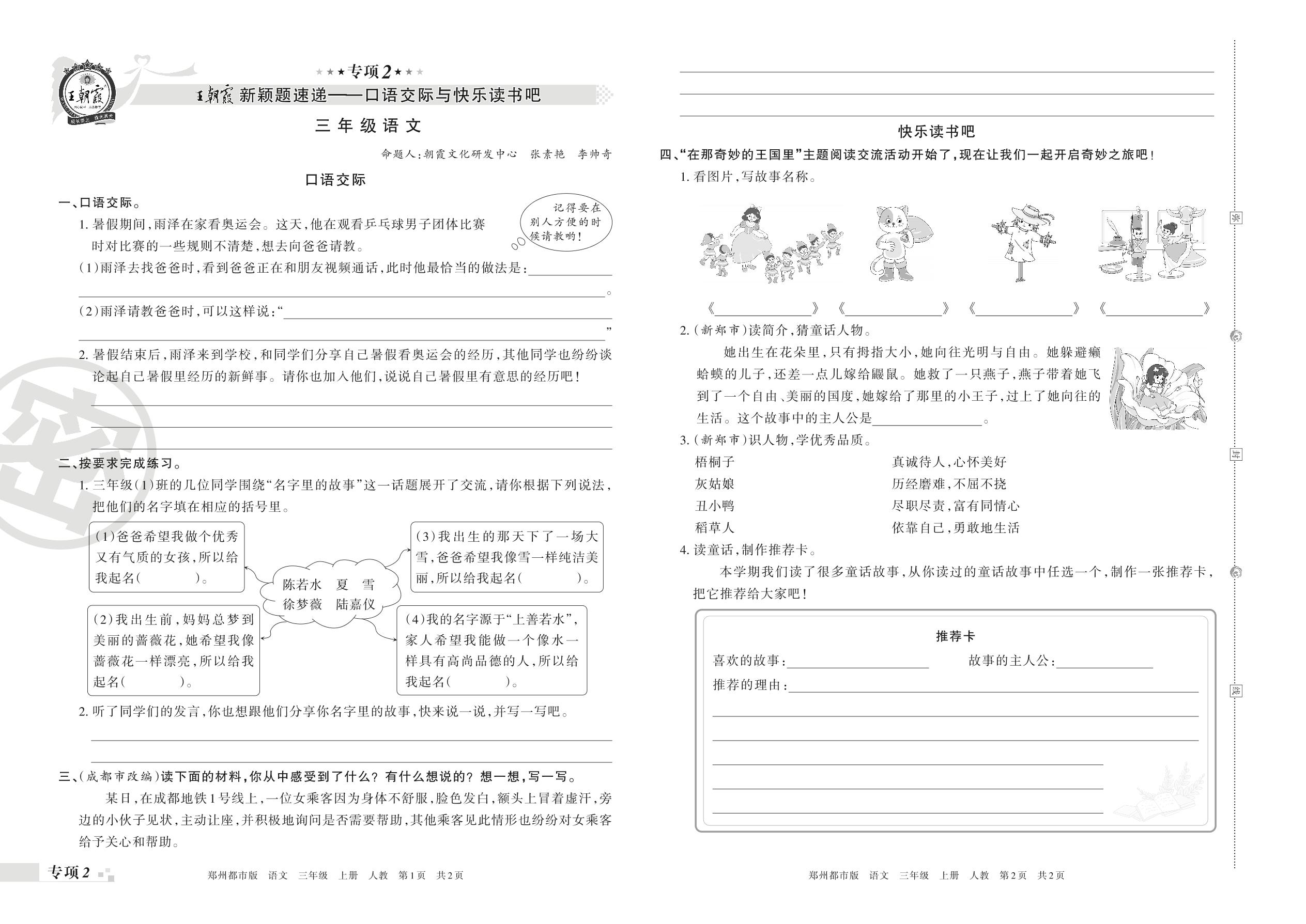 王朝霞期末专项卷——新颖题速递:口语交际与快乐读书吧三年级上册语文(人教版)_R211120135223584【2】