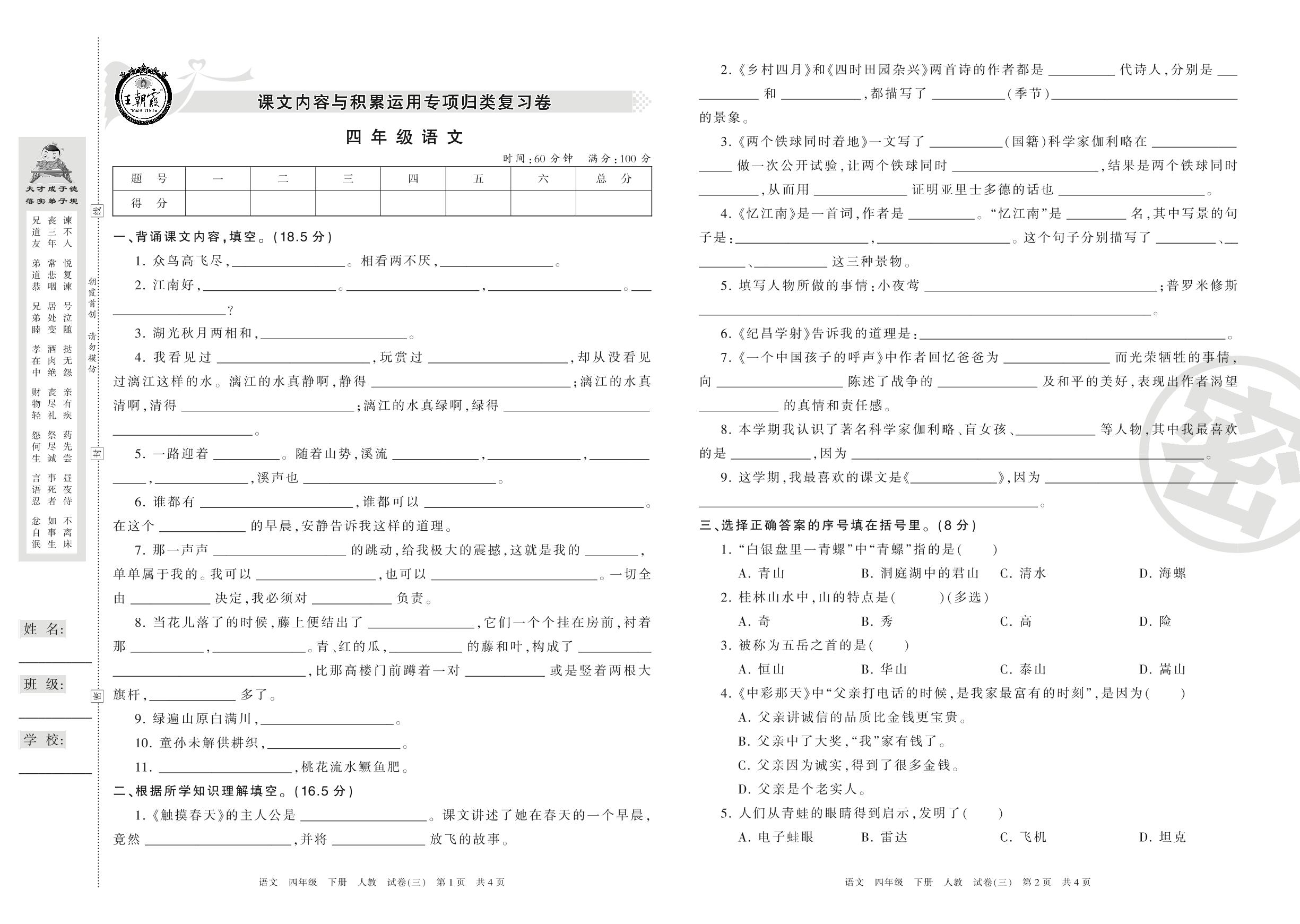 王朝霞期末专项卷四年级下册语文(人教版)_R210801203200【3】