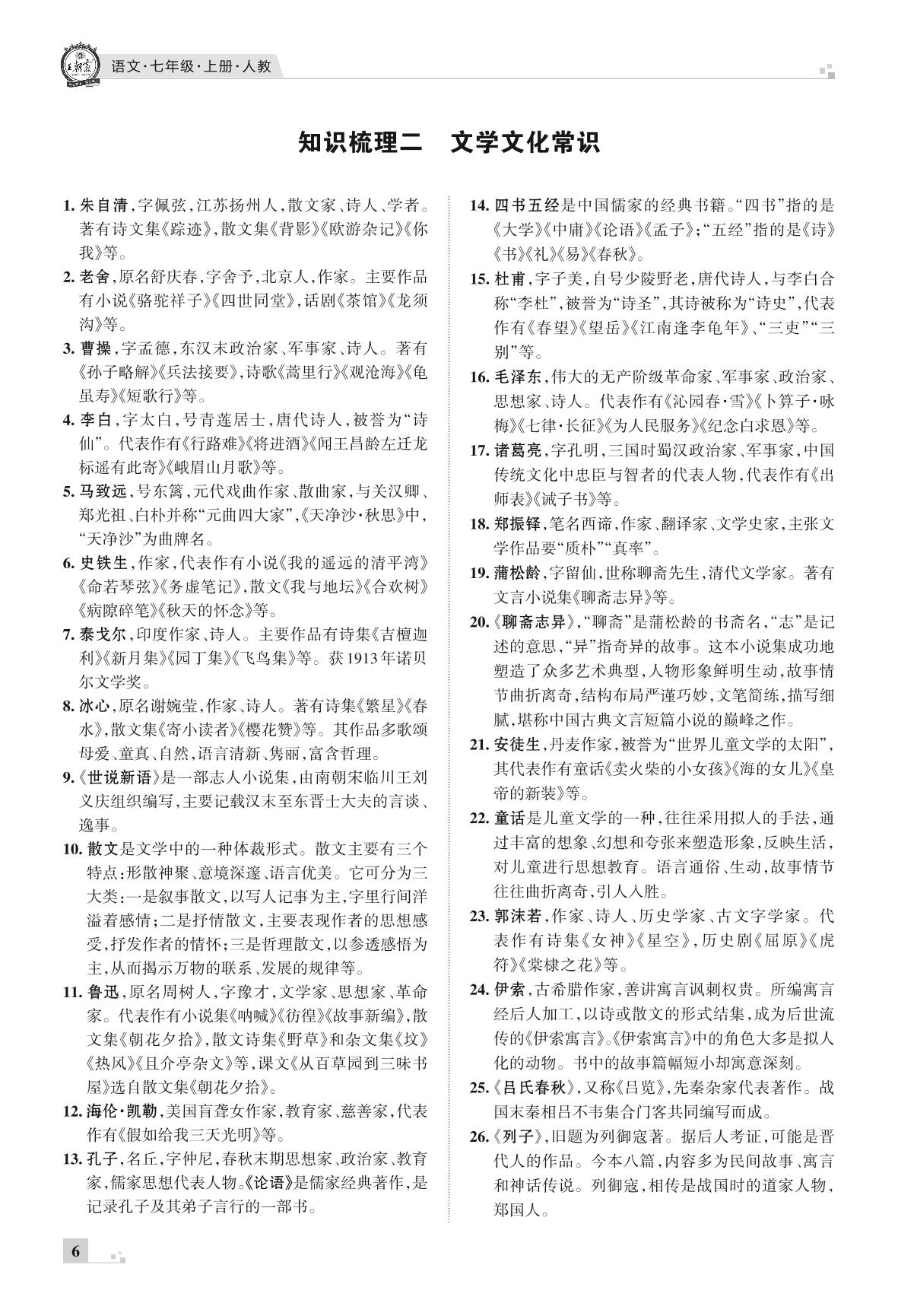 王朝霞期末过课本——知识梳理二 文学文化常识七年级上册语文(人教版)【2】
