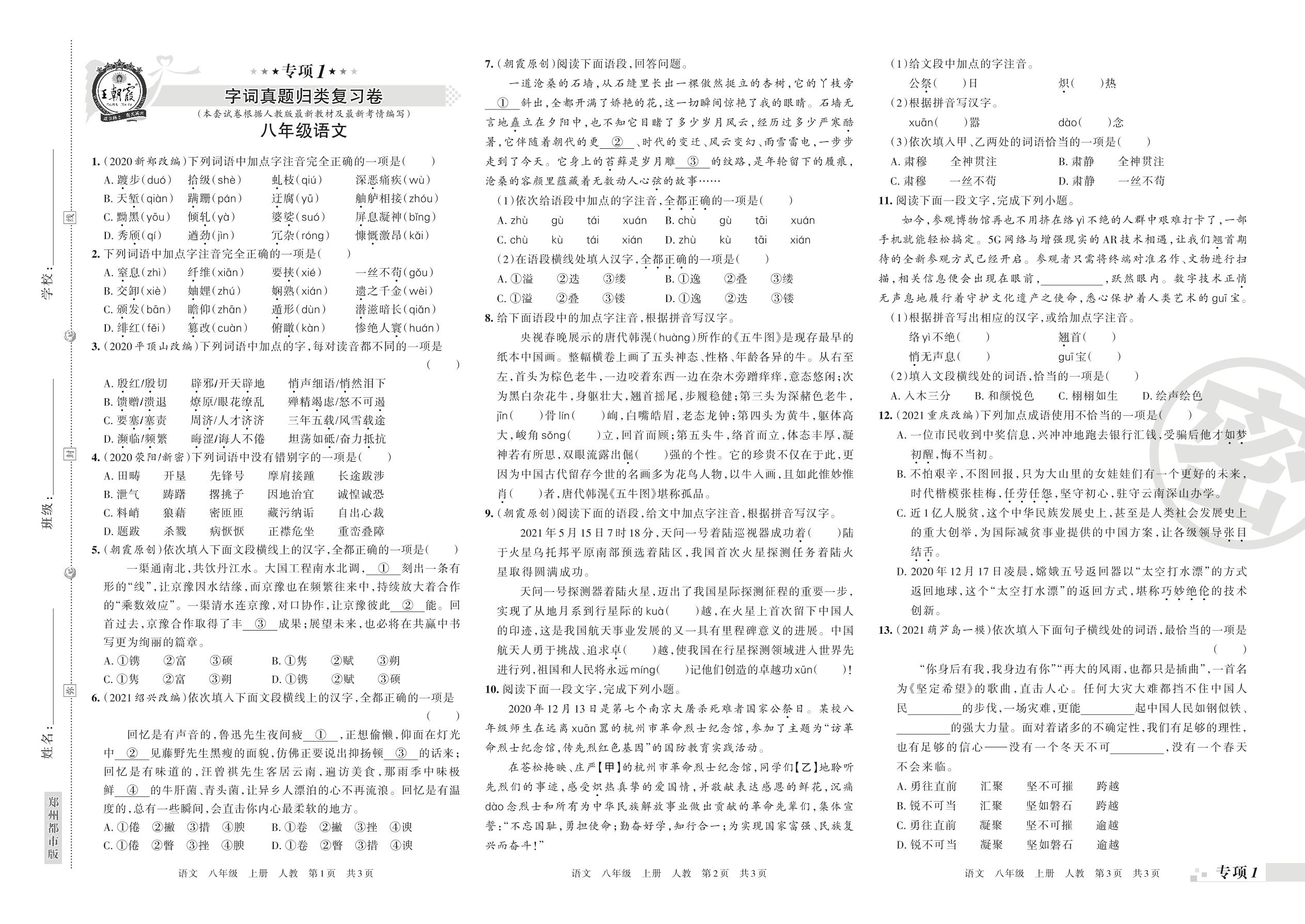 王朝霞期末专项卷——字词真题归类复习卷八年级上册语文(人教版)_R211120141909420【1】
