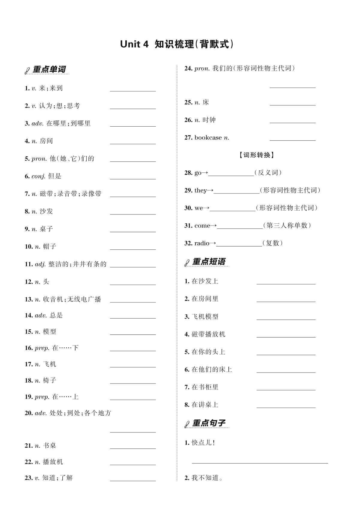 王朝霞期末过课本——Unit 4 知识梳理(背默式)七年级上册英语(人教版)【5】
