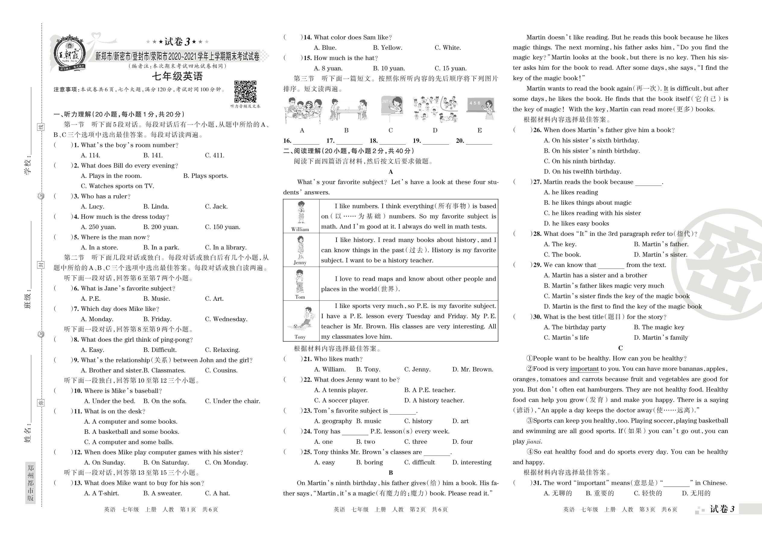 新郑市、新密市、登封市、荥阳市2020~2021学年上学期期末考试试卷七年级英语(人教版)【3】