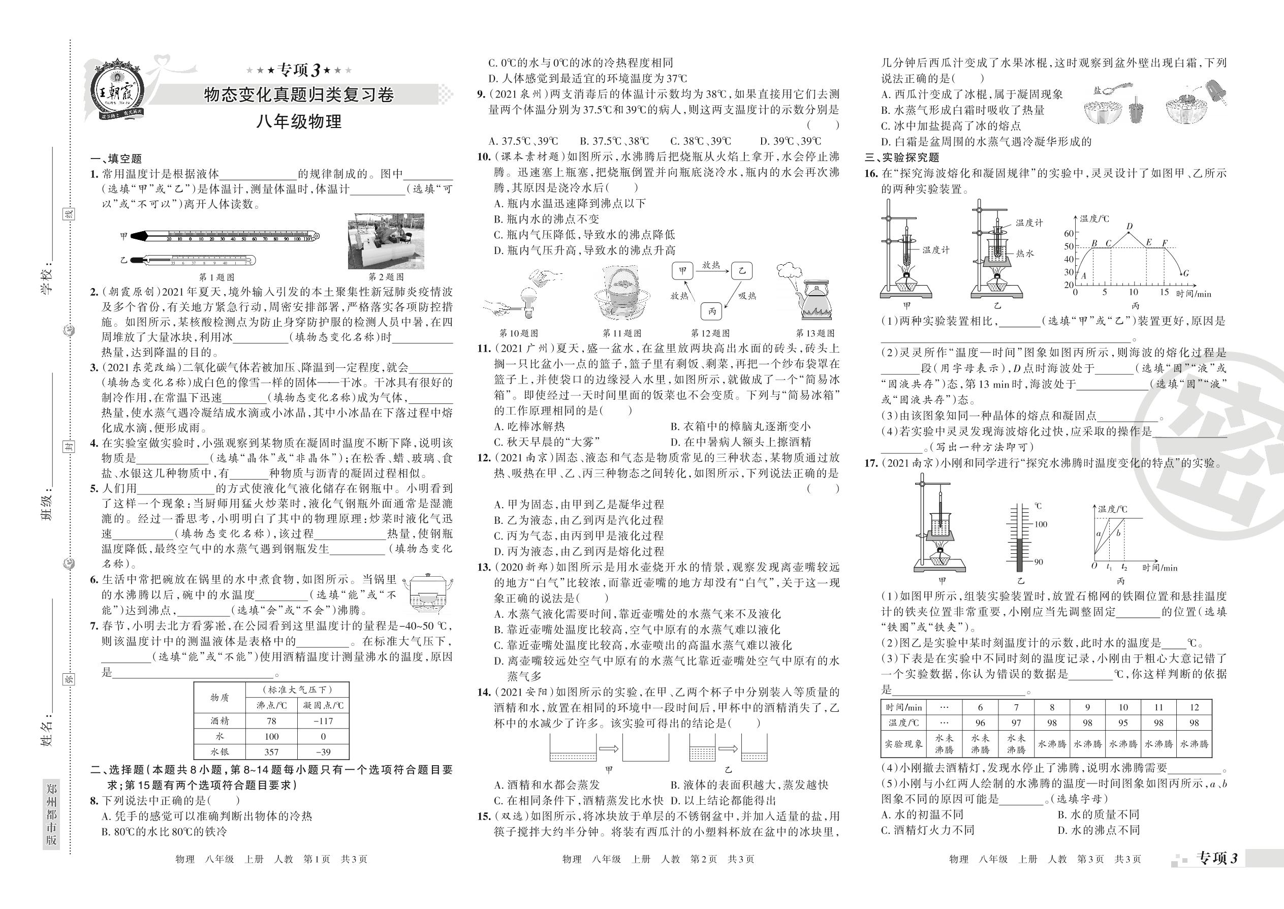 王朝霞期末专项卷——物态变化真题归类复习卷八年级上册物理(人教版)_R211120144419793【3】