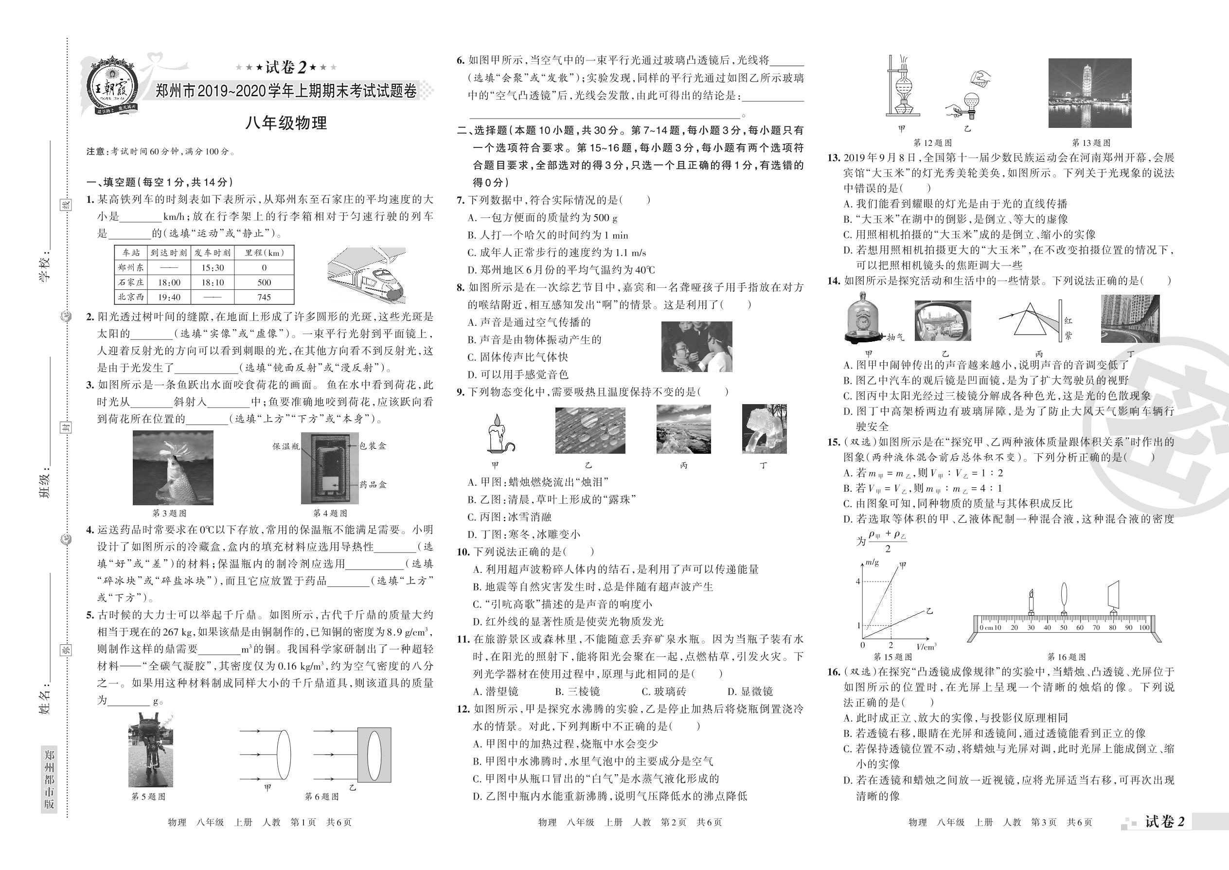郑州市2019~2020学年上期期末考试试题卷八年级物理(人教版)【2】